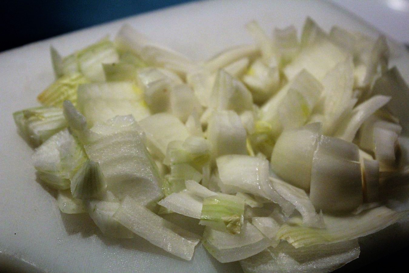 Eine Zwiebel abziehen und zerkleinern