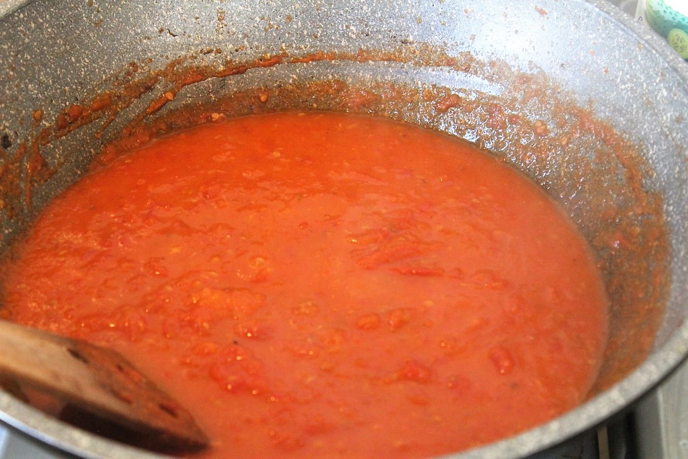 100 Milliliter Tomatenmark. Das ist gut für die Bindung und gibt Geschmack