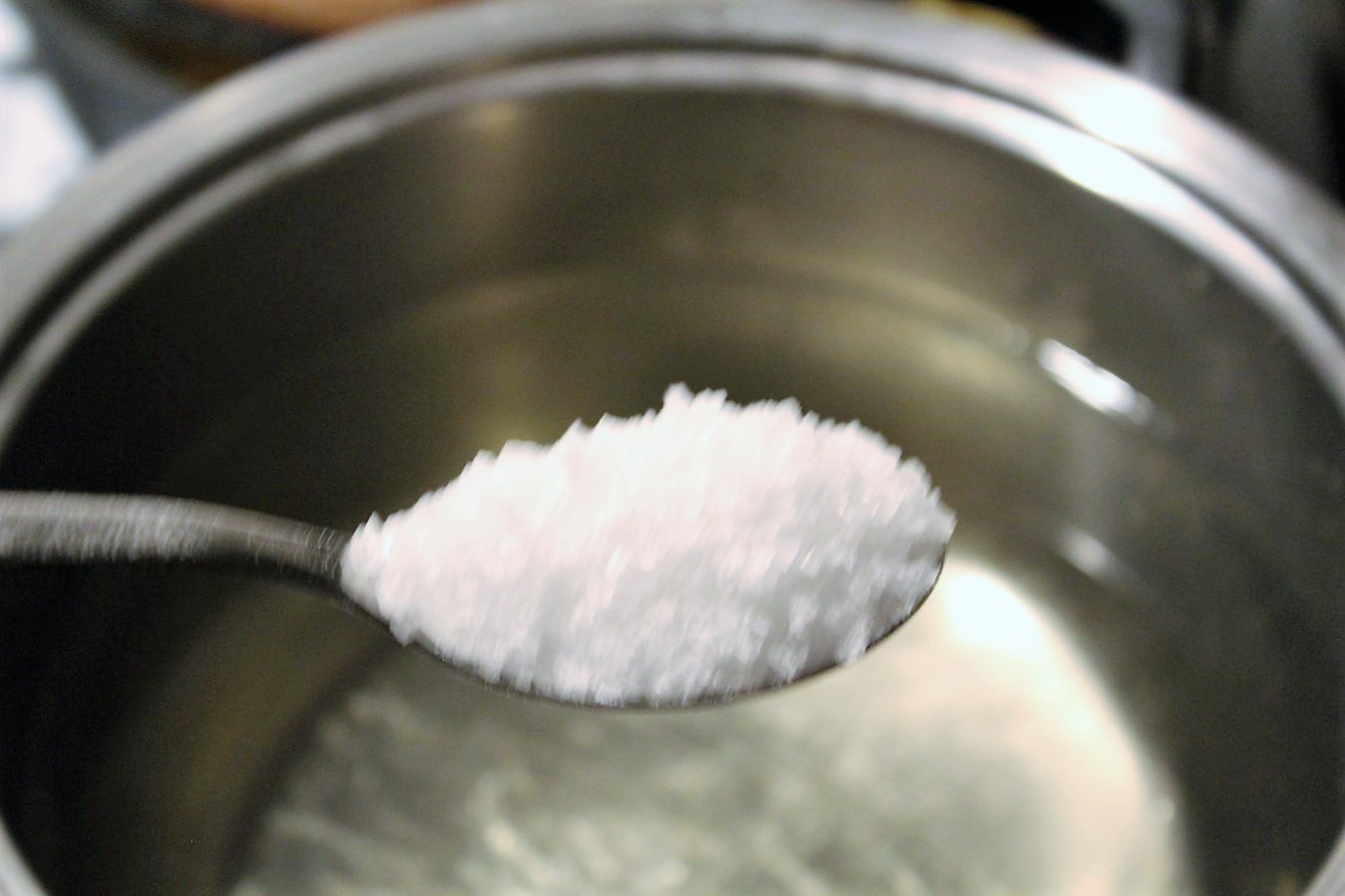 2 Esslöffel Meersalz. Wer später beim Probieren feststellt, dass es zu sauer und zu wenig salzig ist, nimmt halt noch einen Löffel Salz.