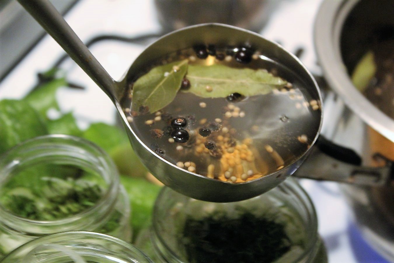 Jetzt wird es spannend, denn wir machen den Gurkensud zum schnellen Einkochen.