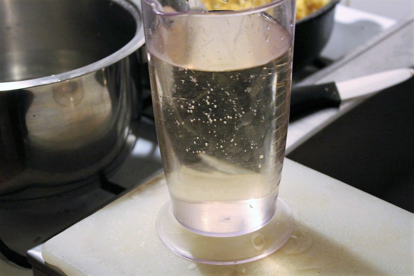 1,5 Liter Wasser und 750 Milliliter Essig in einen Topf geben.