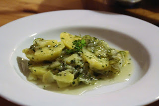 Ich habe am nächsten Tag mit dem Gurkensalat aus dem Glas einen Kartoffel-Gurkensalat gemacht.