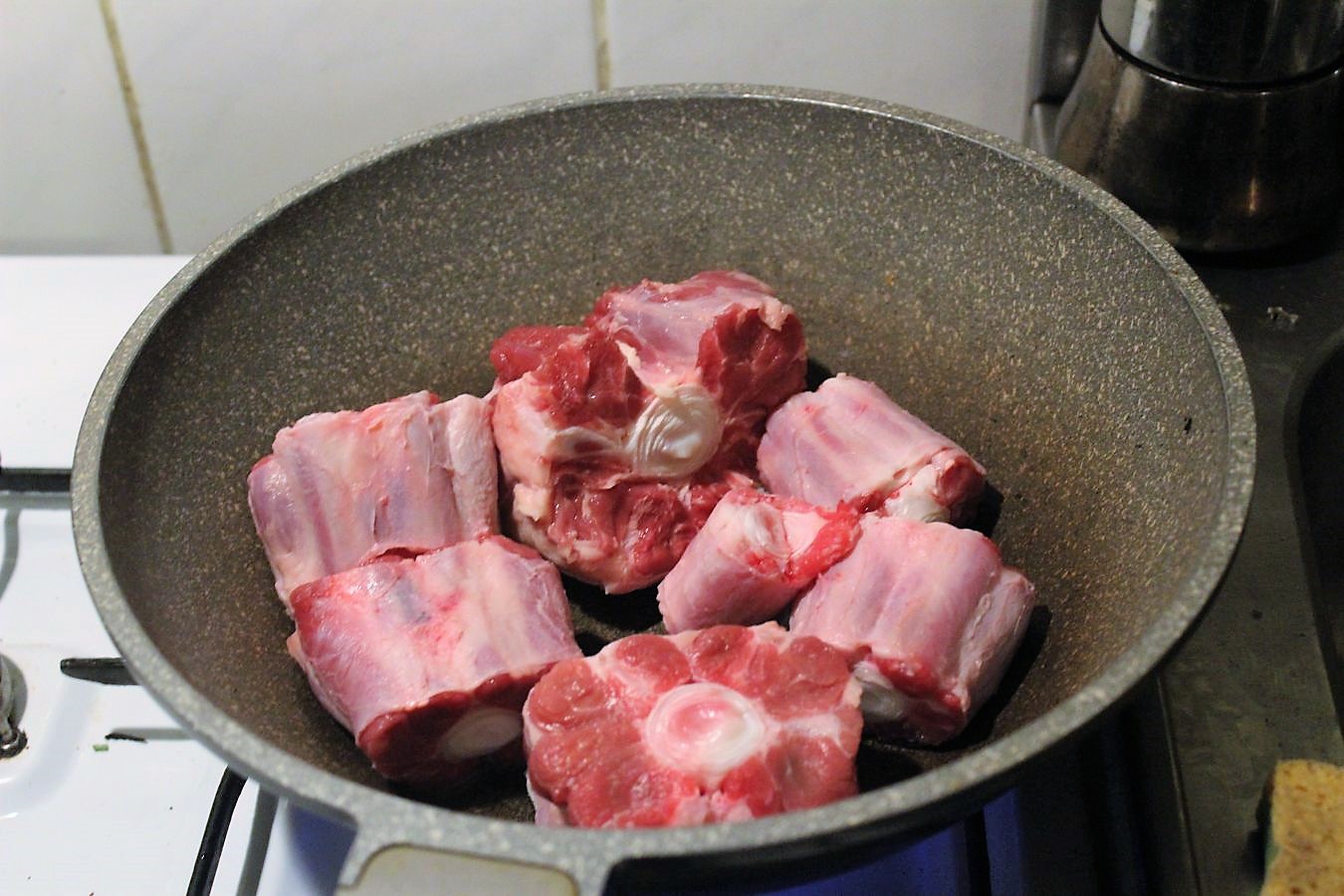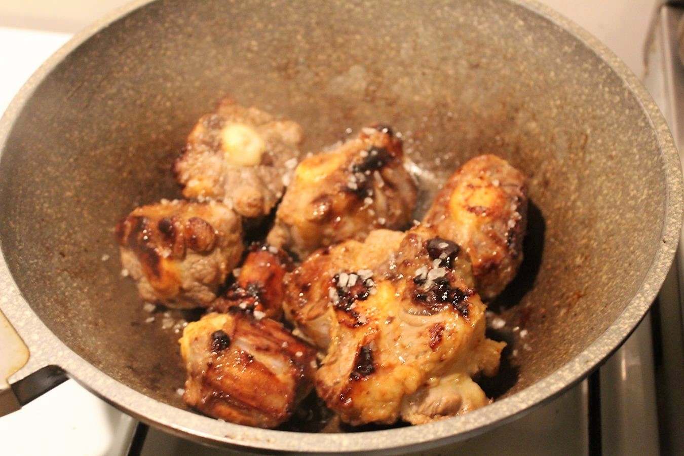Danach sehen die Ochsenschwanzknochen so aus. Das Fleisch lässt sich mühelos von den Knochen abziehen, aber da ich keine Lust habe, mir die Finger zu verbrennen, lasse ich den Ochsenschwanz abkühlen und bis zum nächsten Tag ruhen.