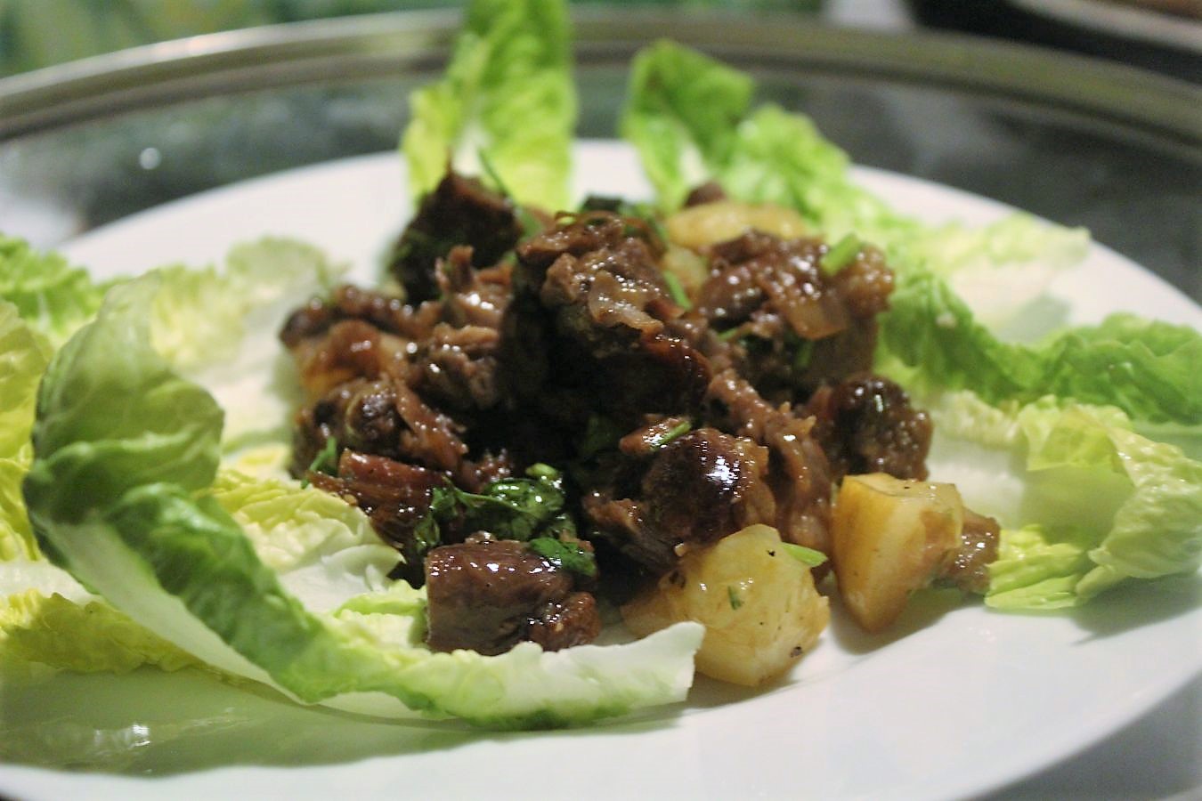 Den Ochsenschwanz kann man in einer kleinen Schüssel servieren, oder man dekoriert das malerisch auf einem Salatbett.