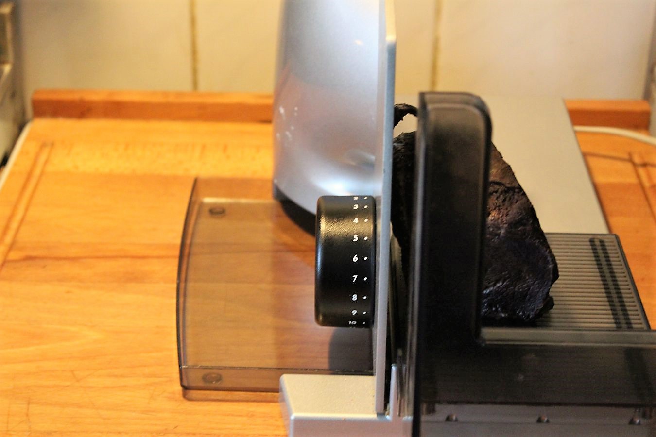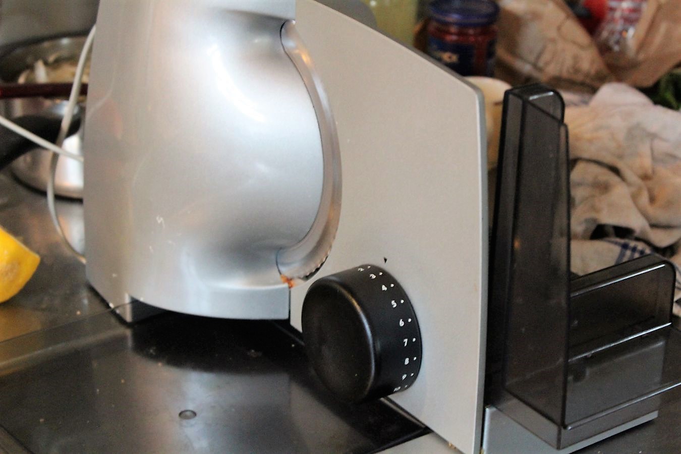 So ein Teil lohnt sich für jeden. Damit kann man sich dann auch mal Wurst am Stück kaufen, die sich viel länger hält als gekaufte Scheiben, zum Brotschneiden, oder jetzt eben zum Schneiden von Fleisch.