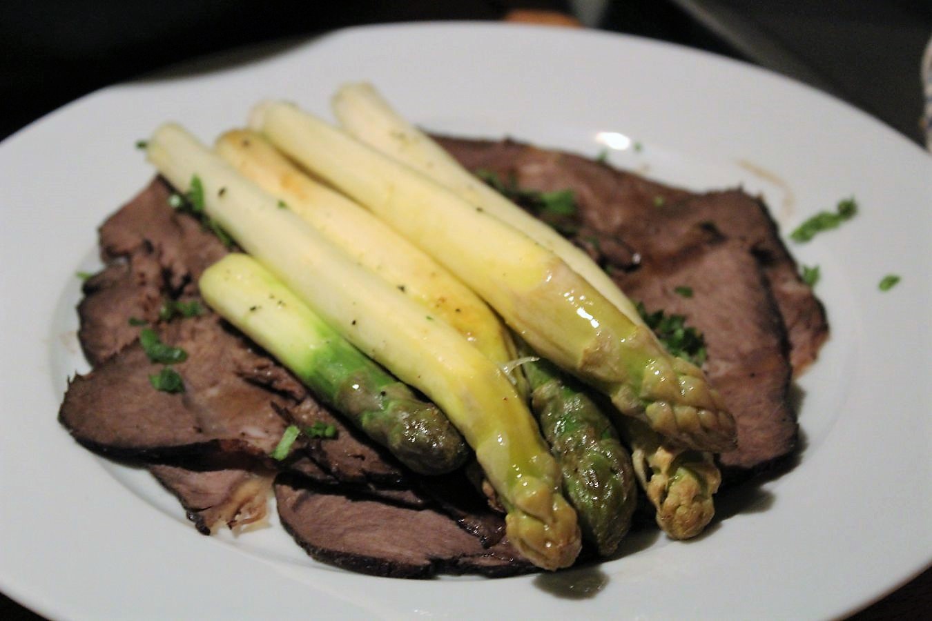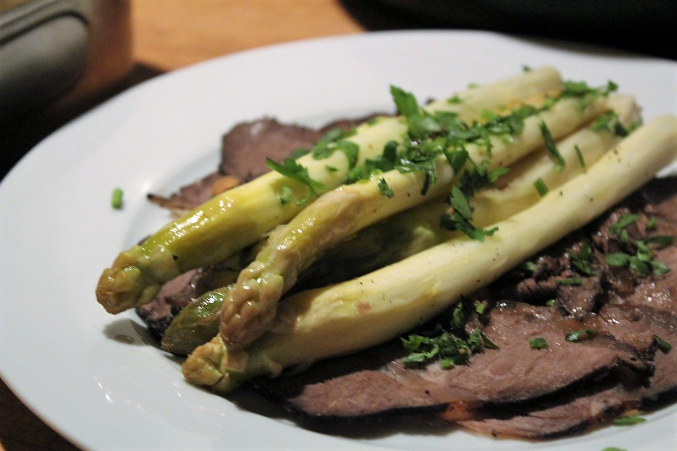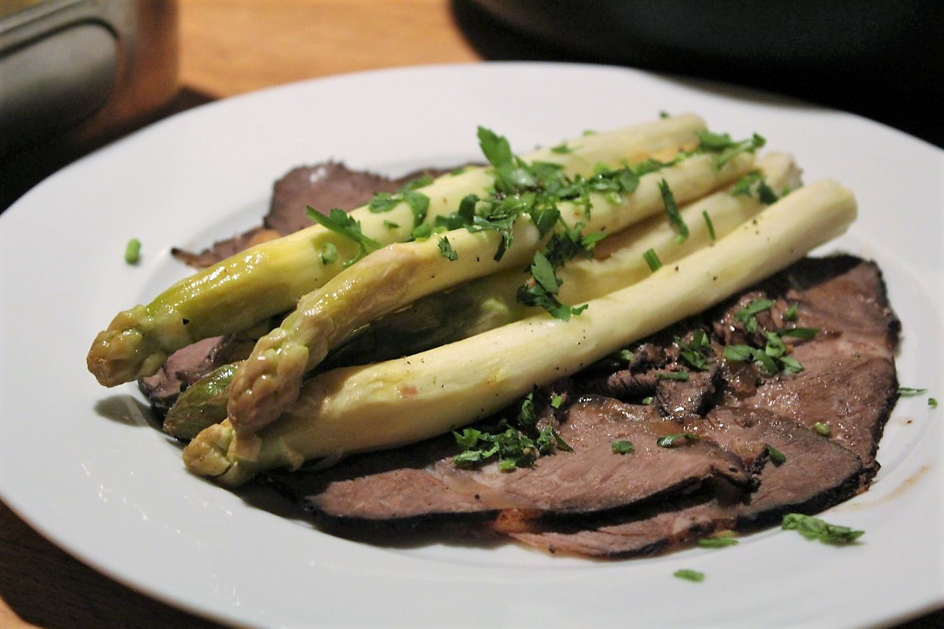 Eines der besten Spargelgerichte, das ich je hatte und das Fleisch ist egal in welcher Kombination auch ganz weit vorne, wenn man Rind mag und nicht mit dem Budget für hochwertige Stücke arbeiten kann, oder möchte. Hier schlägt Liebe auf jeden Fall die Kasse.