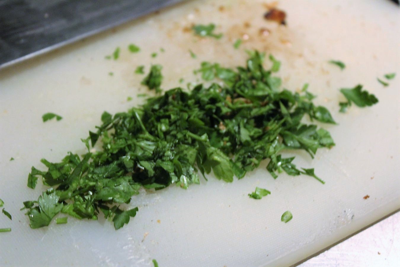 Frische schadet bei sowas nie, deswegen noch ein wenig Petersilie hacken und auf dem Fleisch verstreuen