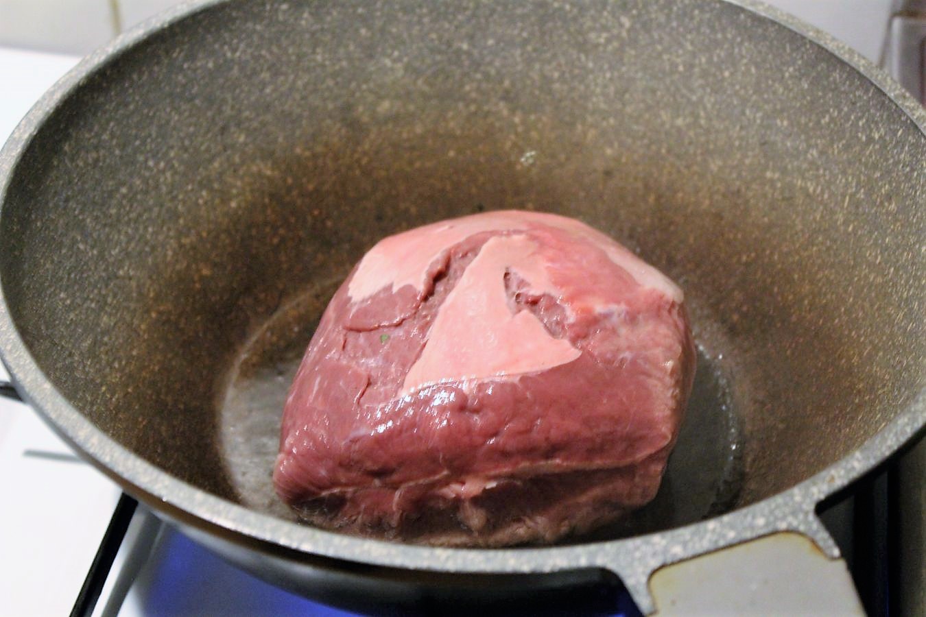 Fleisch von allen Seiten 20 Minuten lang anbraten und nicht schüchtern sein.