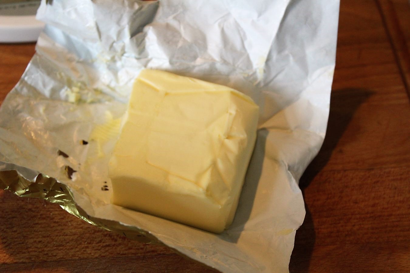 Ist das ein Augenmaß? Alter! Mit dem Auge auf ein Gramm genau 80 Gramm Butter von einem Stück geschätzt, das schon vorher nicht mehr komplett war. Ich sollte echt Lotto spielen, obwohl da hätte ich dann wohl nur 6 richtige, ohne Zusatzzahl. Wenn man ein ganzes Stück Butter hat, sind das 250 Gramm, da stelle ich mir dann vor wie das ist, wenn 10 Gramm fehlen und die Differenz teile ich dann durch drei, bevor ich schneide. Das hilft ungemein, weil man dann weniger denken muss und intuitiv schneller ist, als die Leute die dann immer noch nachdenken müssen.