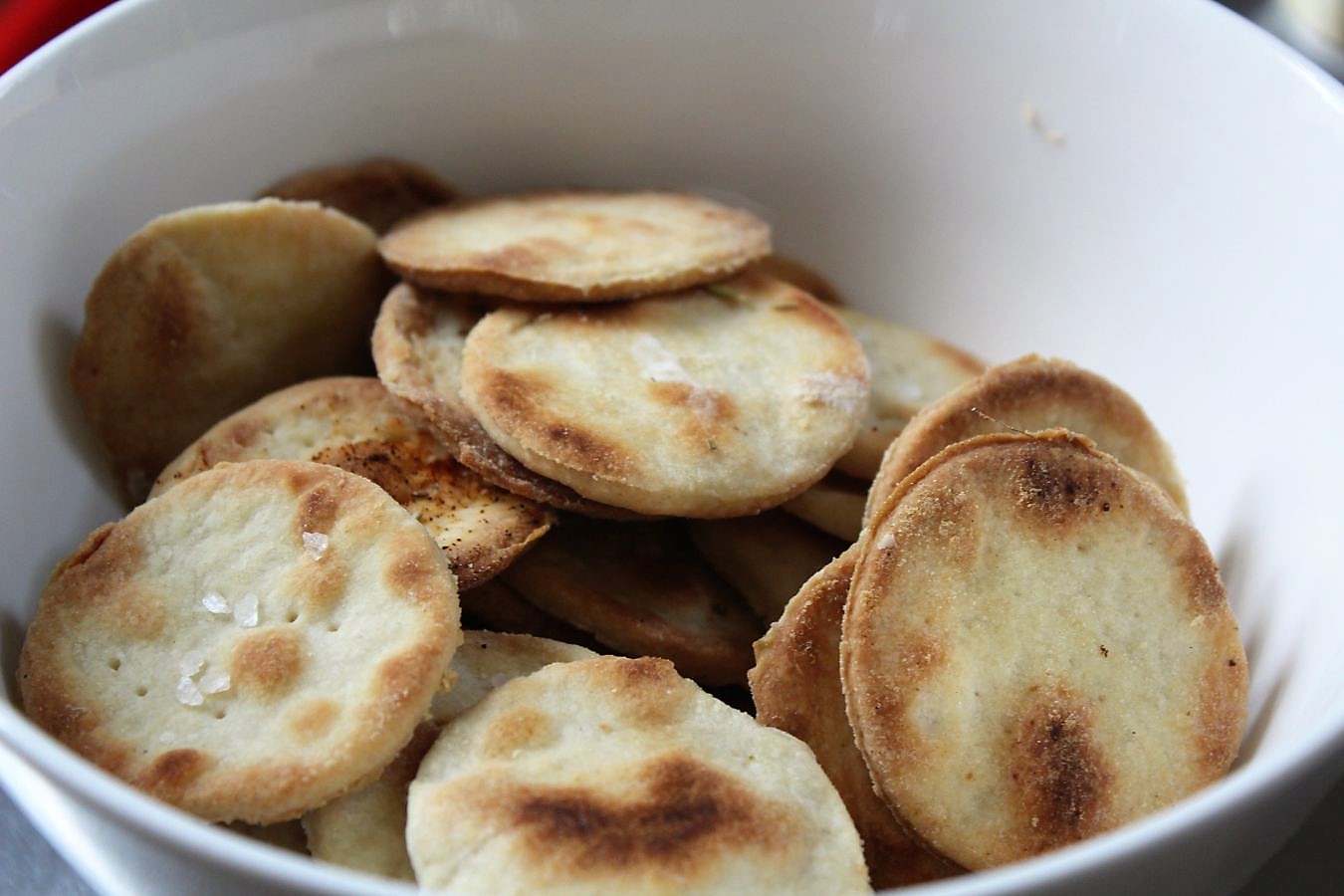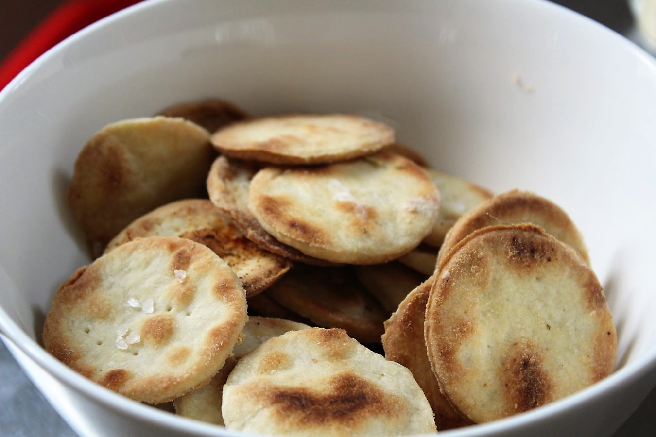 Da sitzt man nach Mitternacht vor dem Rechner, postet das tägliche Rezept, fängt die ersten Reaktionen ein und dann kommt eine spontane Anfrage rein, wo denn mein Rezept für selbst gemachte Cracker wäre? Ihr wisst schon, Tuc, Club Cracker und wie sie alle heißen. Gute Frage, ich bin ja nicht so der Knabberkramtyp, obwohl ich das schon irgendwie mag, aber weil man das gekauft immer mit dem dummen Palmöl bekommt, das da nichts drin zu suchen hat, kaufe ich sowas nur auf Zuruf durch die Familie, wenn mal Bedarf herrscht.