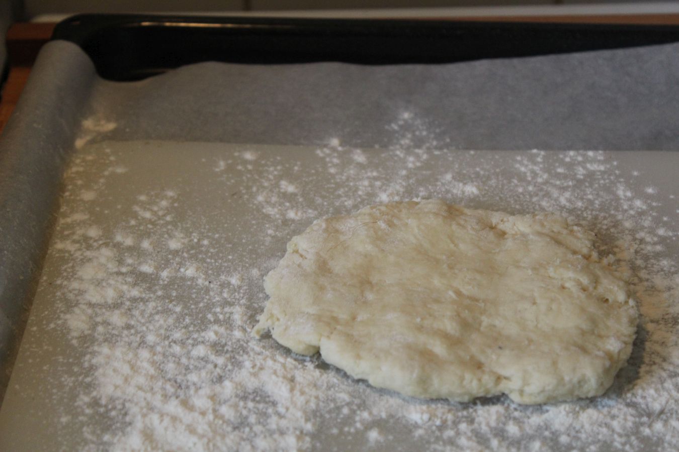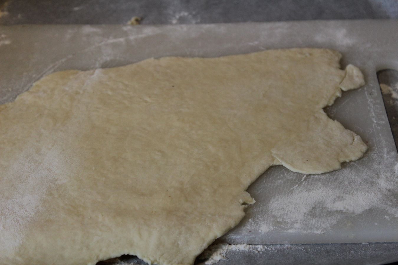 Teig mit dem Nudelholz ausrollen. Wie flach der werden soll, habt Ihr selbst in der Hand.