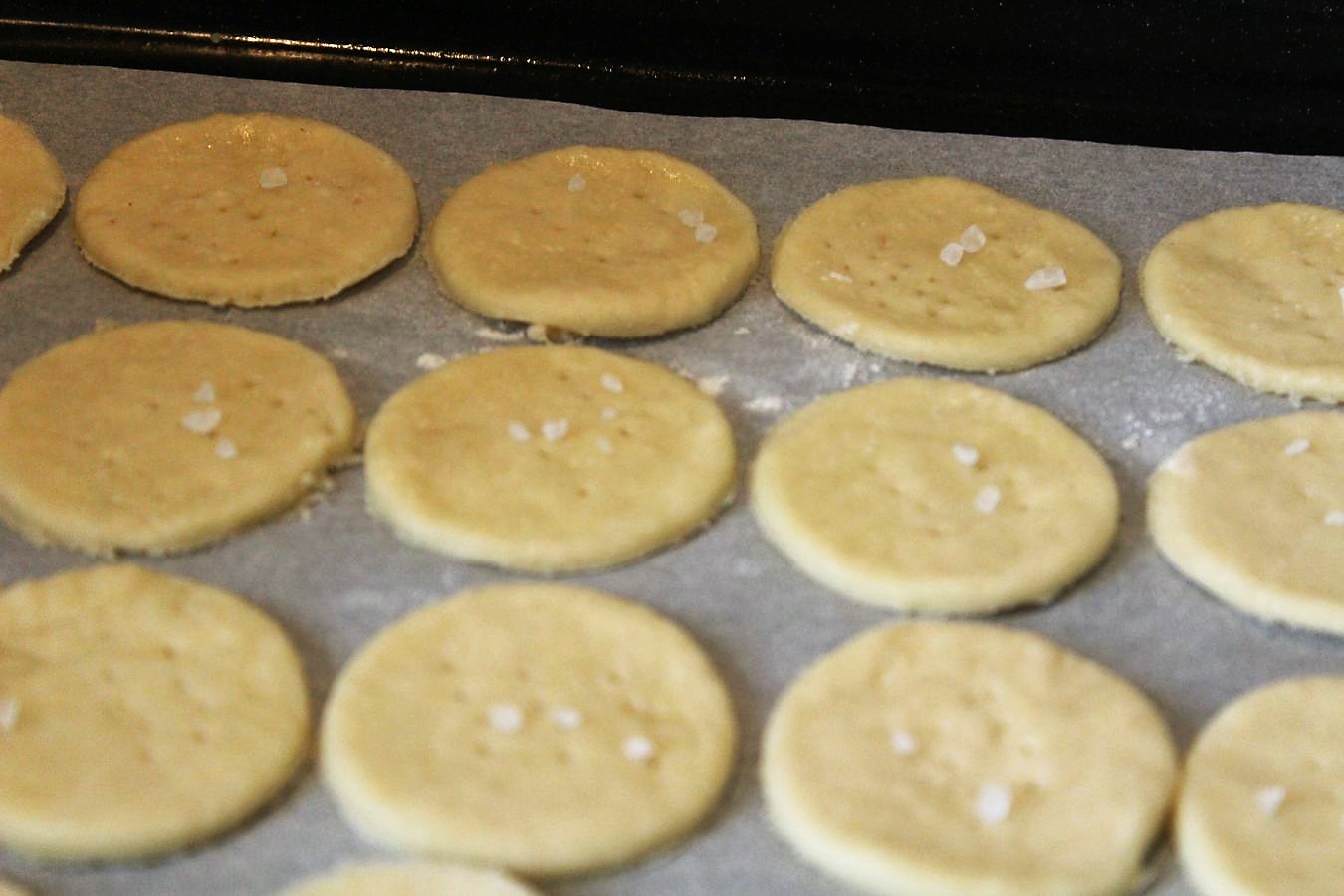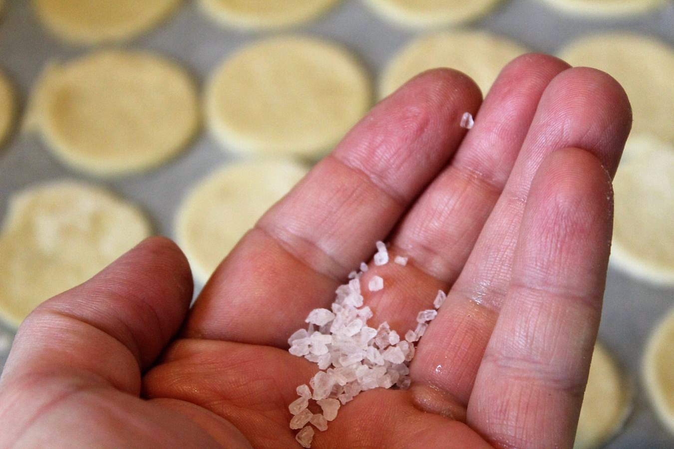 Während der Ofen vorheizt, kommt noch ein wenig Salz auf die Cracker, schließlich sollen es ja Salzcracker werden