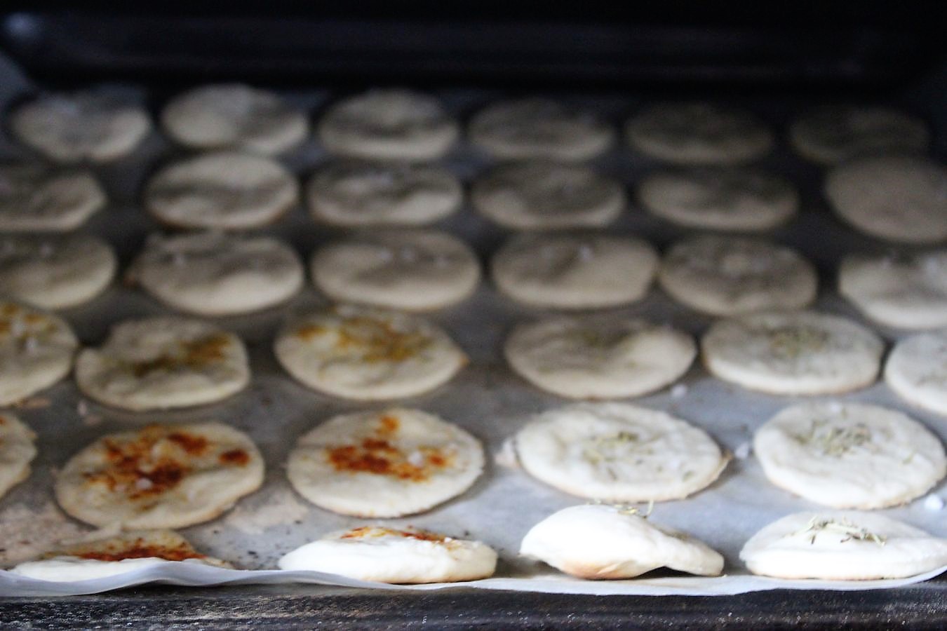 Weil mein Ofen keine Oberhitze hat, drehe ich nach 8 Minuten einmal die Cracker um. Wer Ober- und Unterhitze hat, lässt die Finger von den Crackern und wartet nur ab, bis die 10 Minuten rum sind.