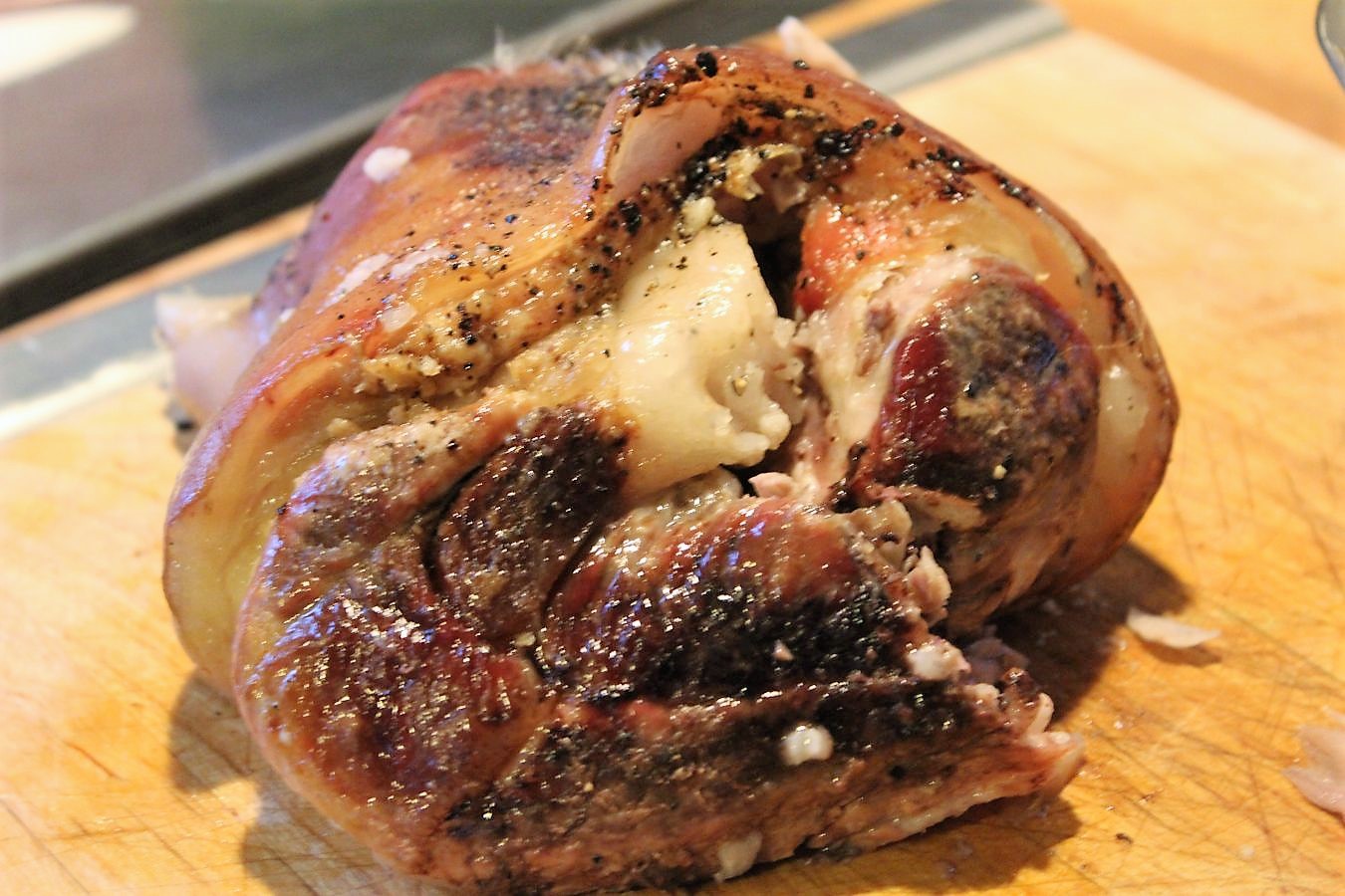 Das Eisbein ist nach vier Stunden im Backpapier bei geringer Temperatur zart wie Butter