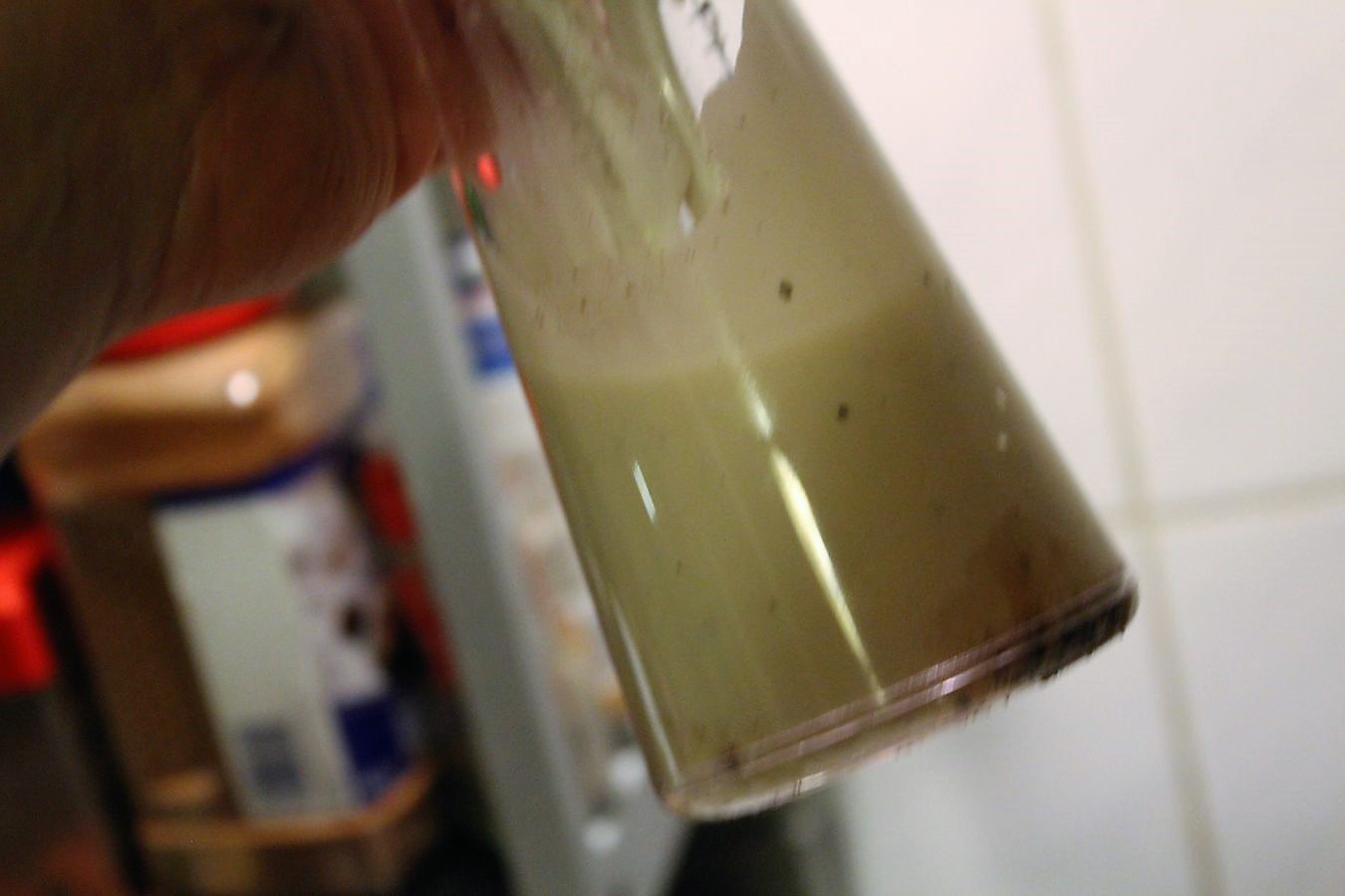 Dressing in ein Gefäß umfüllen, in dem man das Dressing rühren kann
