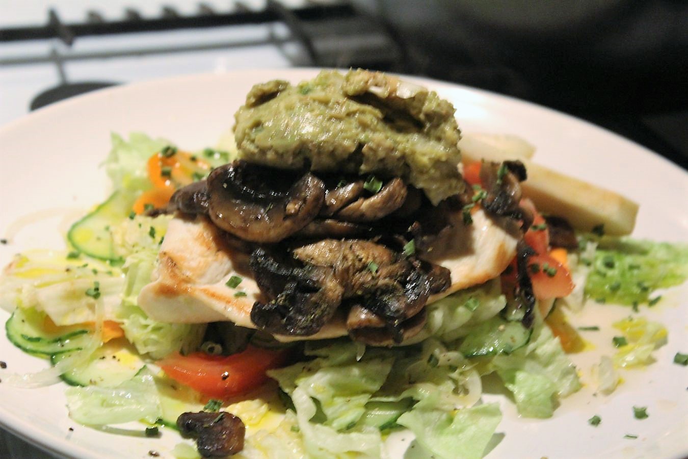 Nun noch schnell einen Schlag Guacaomole über die Pilze dekorieren