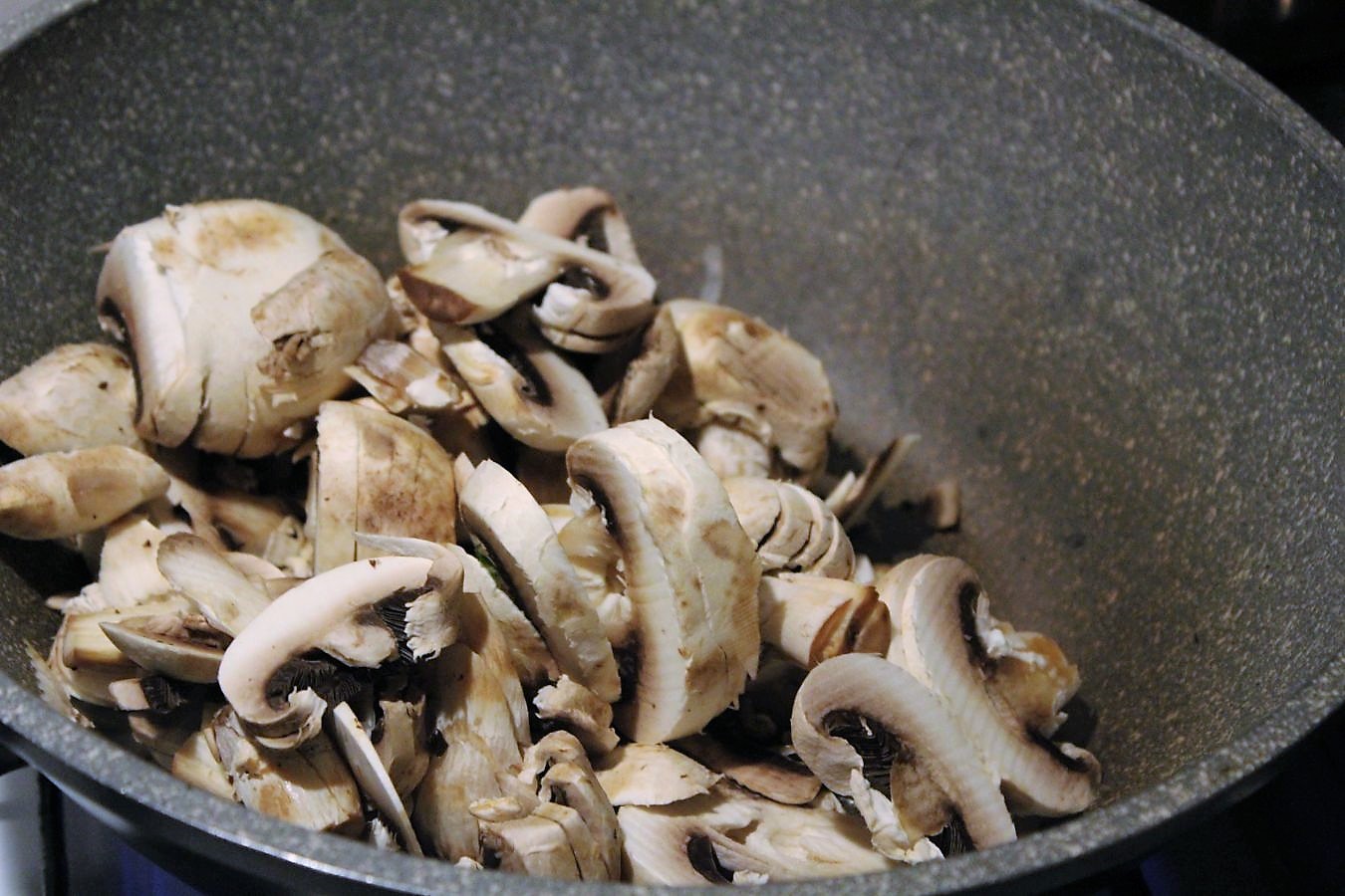 Champignons scharf anbraten bei voller Hitze, nach 5 Minuten vom Gas gehen