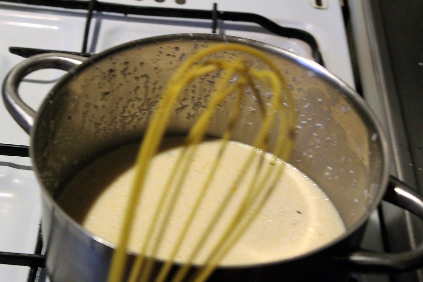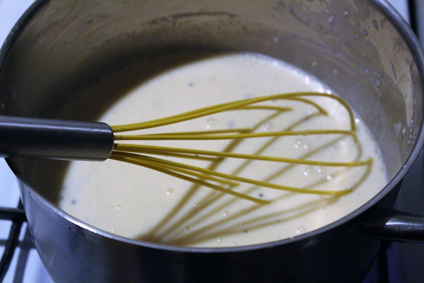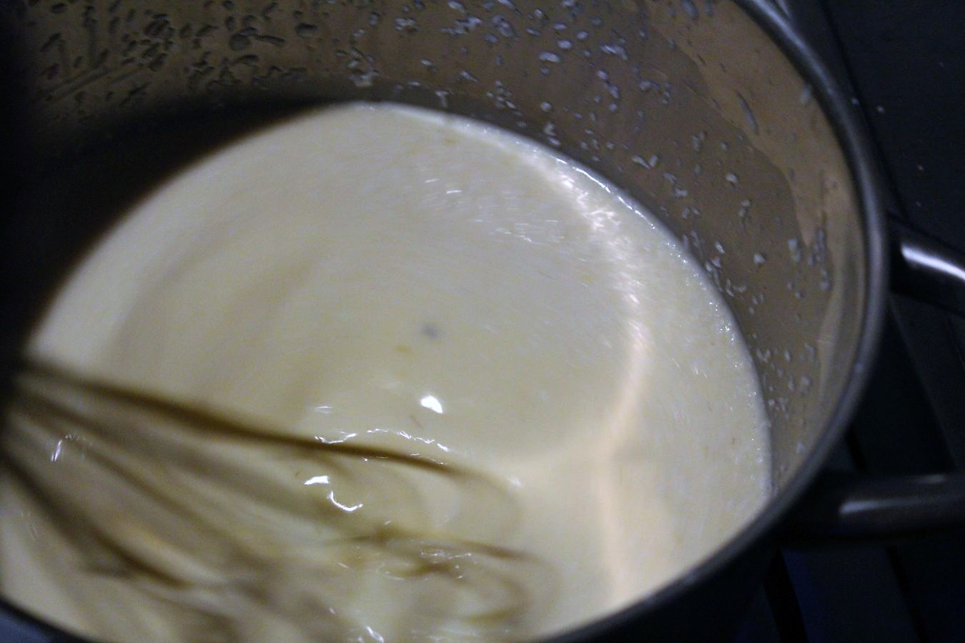 Jetzt wird beim Erhitzen der Milch aber immer noch kräftig gerührt, damit nichts am Topf anbrennt