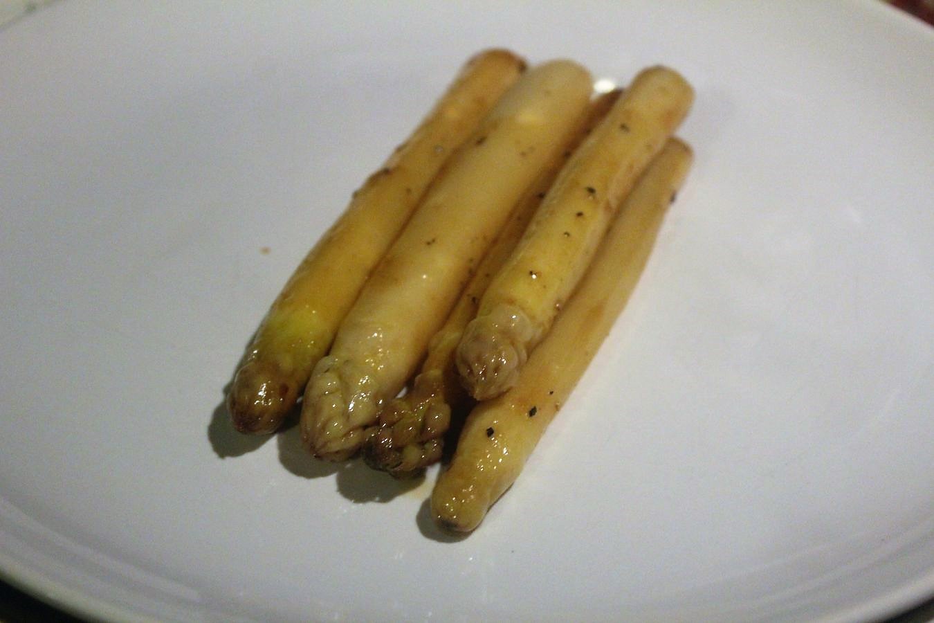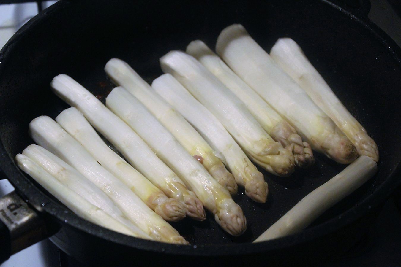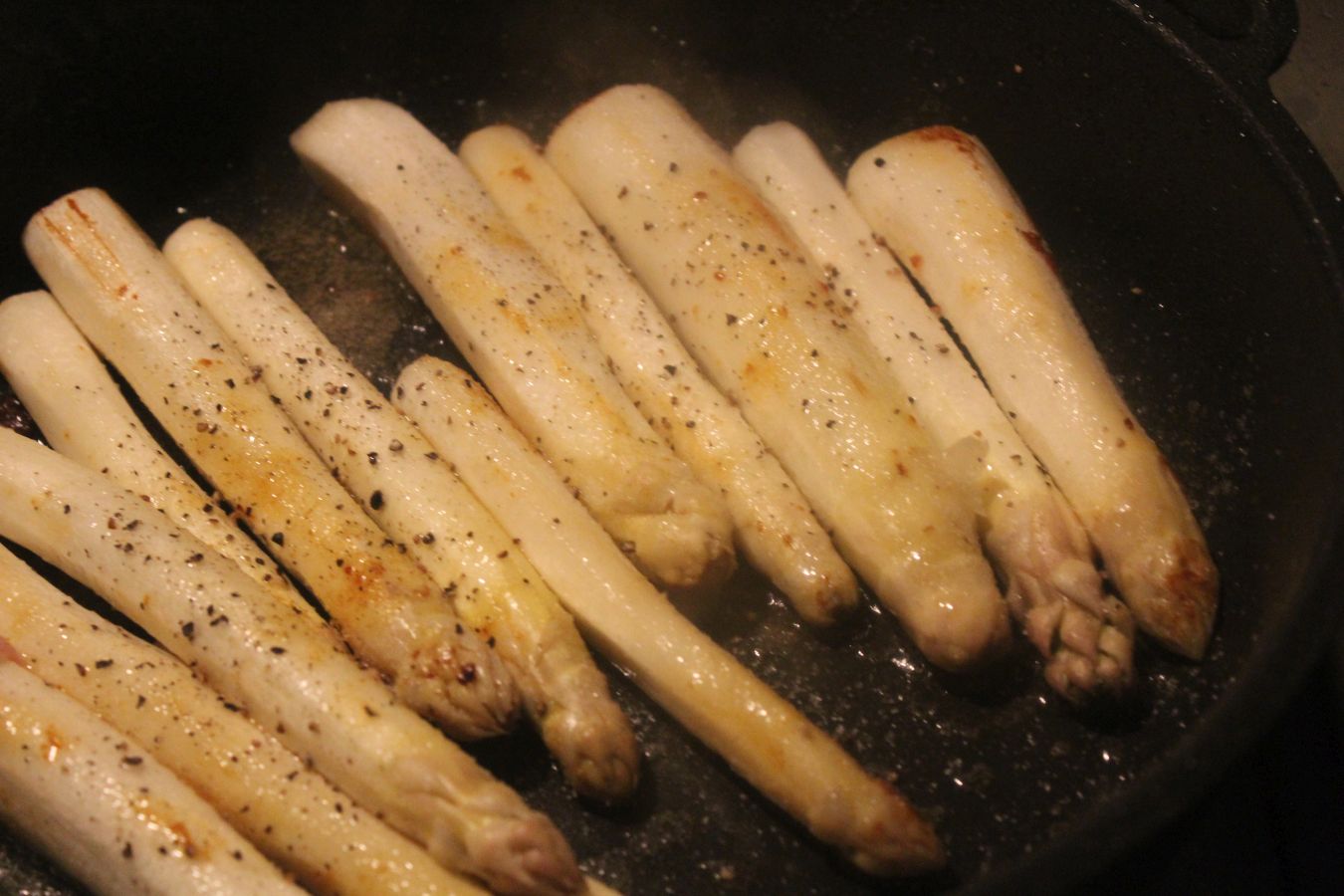 Der Spargel bleibt ca 10 bis 12 Minuten in der Pfanne und hat dann noch ein bisschen Biss. Also nicht erschrecken, wenn Ihr nur den durchhängenden von Oma kennt.