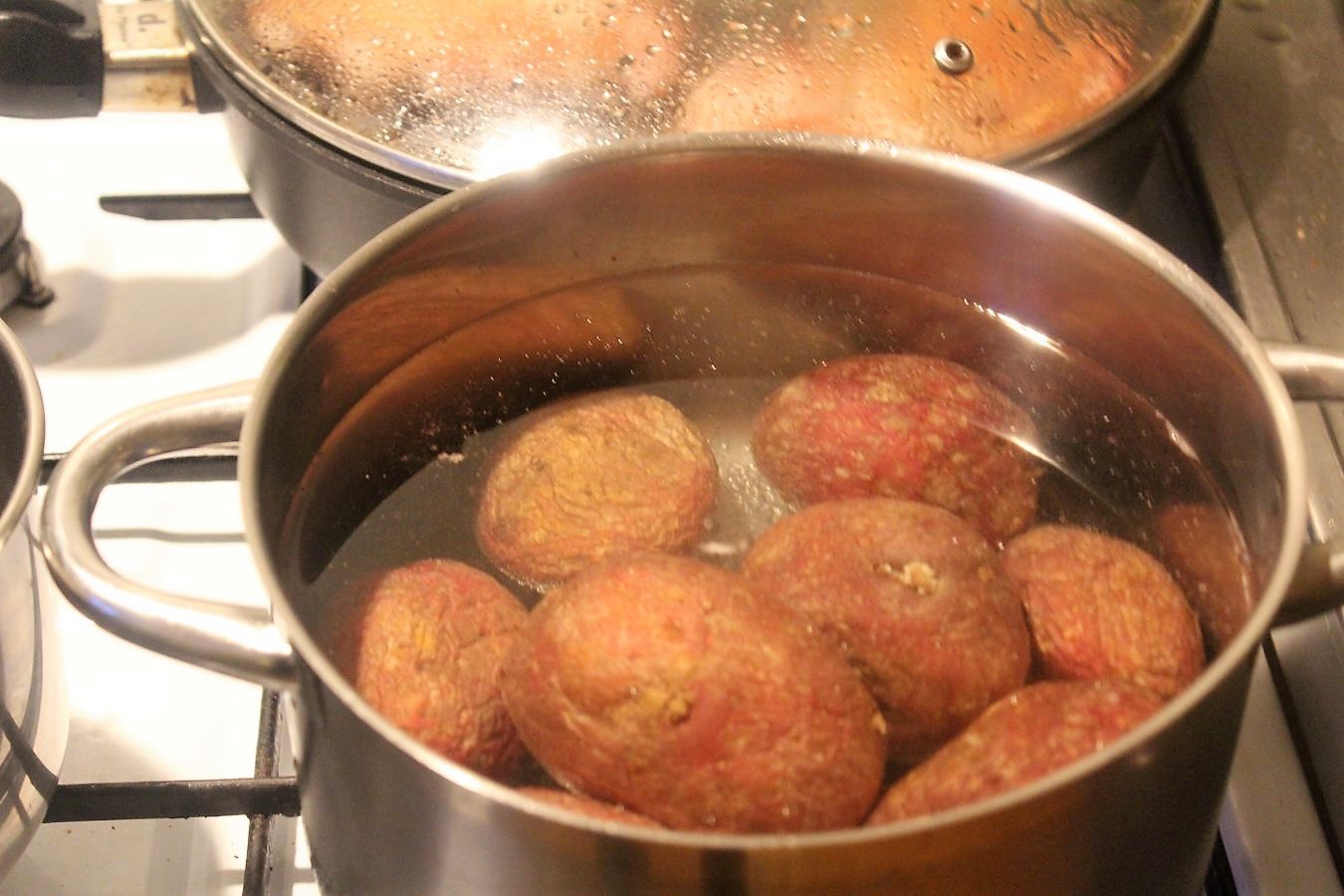 Kartoffeln nicht vergessen. Wer ein paar Minuten extra zum Schälen investieren mag, kann das natürlich auch machen.