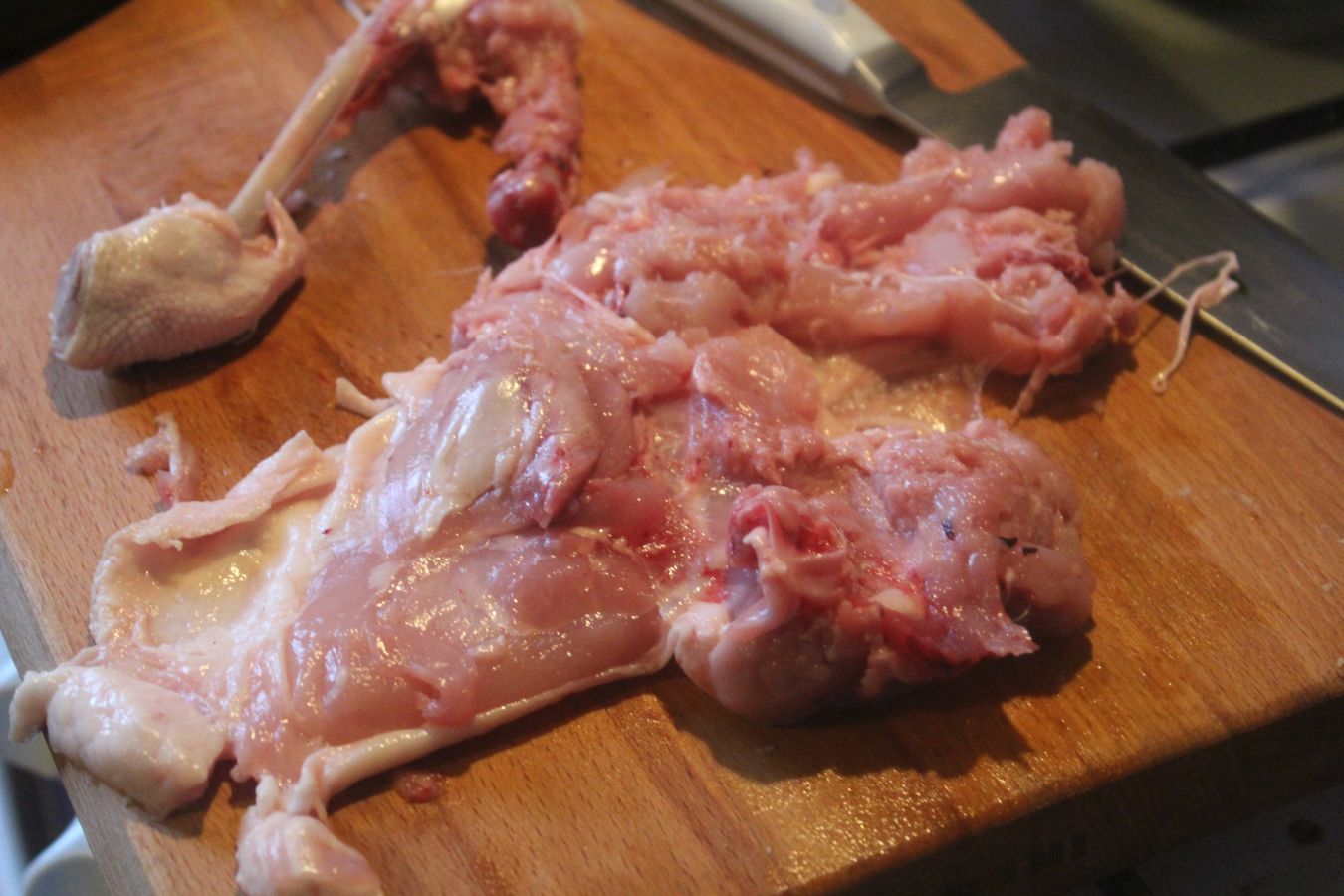 Wenn man Keulen ohne Rückenstück nimmt, geht es auch schneller, weil man weniger Knochen beachten muss.