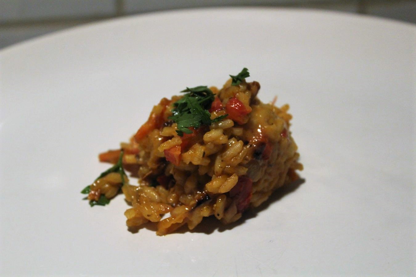 Djuvecreis auf dem Teller anrichten.