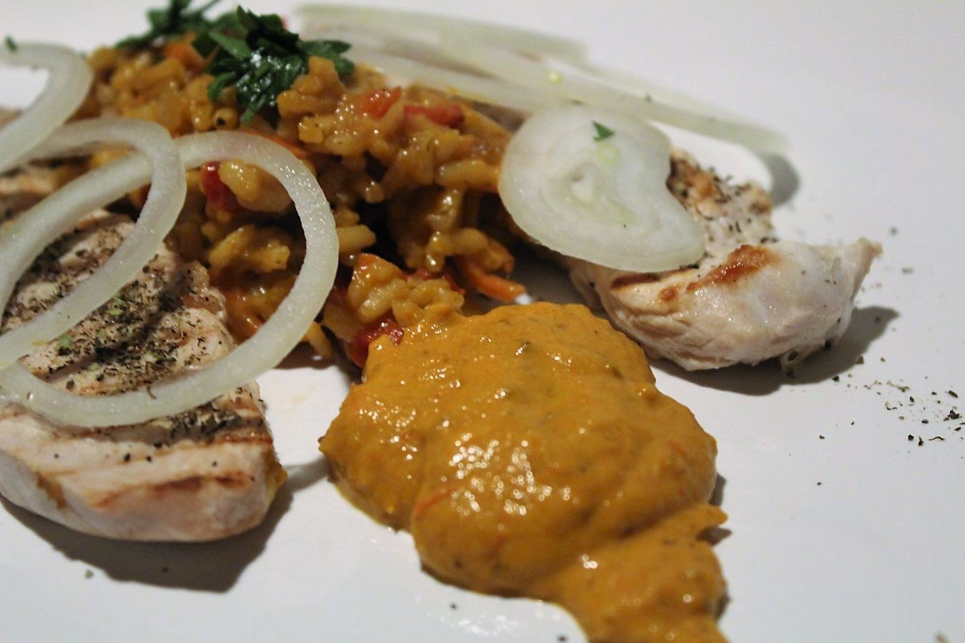 Für mich bedeutet Grillteller auch verschiedene Sorten Fleisch auf dem Teller, deswegen kommt noch ein wenig Putenbrust dazu, die auch mit der Gewürzmischung auf Geschmack getrimmt wird.