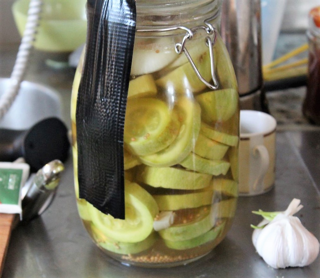 Da habe ich mich selbst gefoppt. Meine Kinder wollen von mir immer saure Gurken haben, am liebsten selbst eingelegt, oder eingekocht. Beim Mix Markt gab es günstig schon abgepackt im Beutel Zucchini mit Druckstellen, die dringend weg mussten. Das stand aber nirgendwo drauf, dass es Zucchini sind, sondern nur ein Preis. Ich habe das selbst für Gurken gehalten, weil die recht klein waren und ein anderes Grün, als ich es von Zucchini kenne. Einen Teil habe ich in der Pfanne gebraten (anklicken), da wusste ich dann aber schon dass es Zucchini waren, aber als ich die Zucchini wie Gurken eingelegt habe, war mir das noch nicht klar.