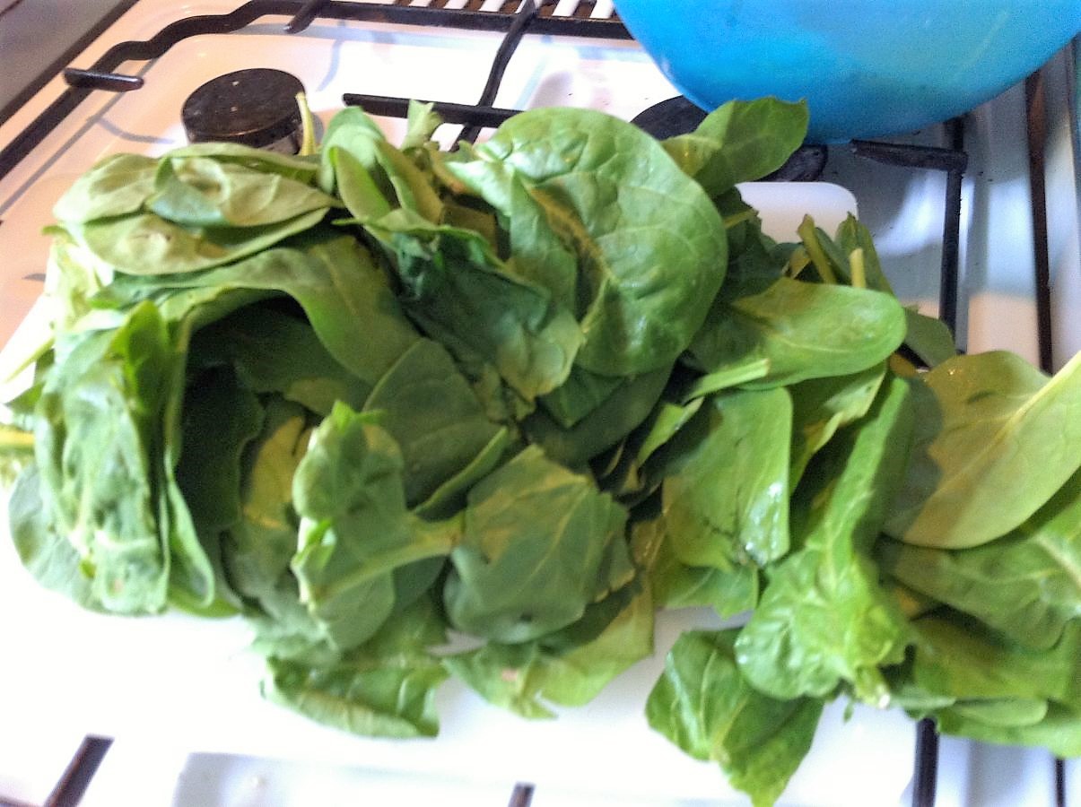 Das ist frischer Spinat. Den mag ich sehr gerne und ich würde Euch hier nie irgendwas mit Tiefkühlspinat zeigen. Entweder frisch, oder gar nicht. Ist eine ganz einfache Faustformel. Was man nicht frisch bekommen kann, muss man nicht verwenden.