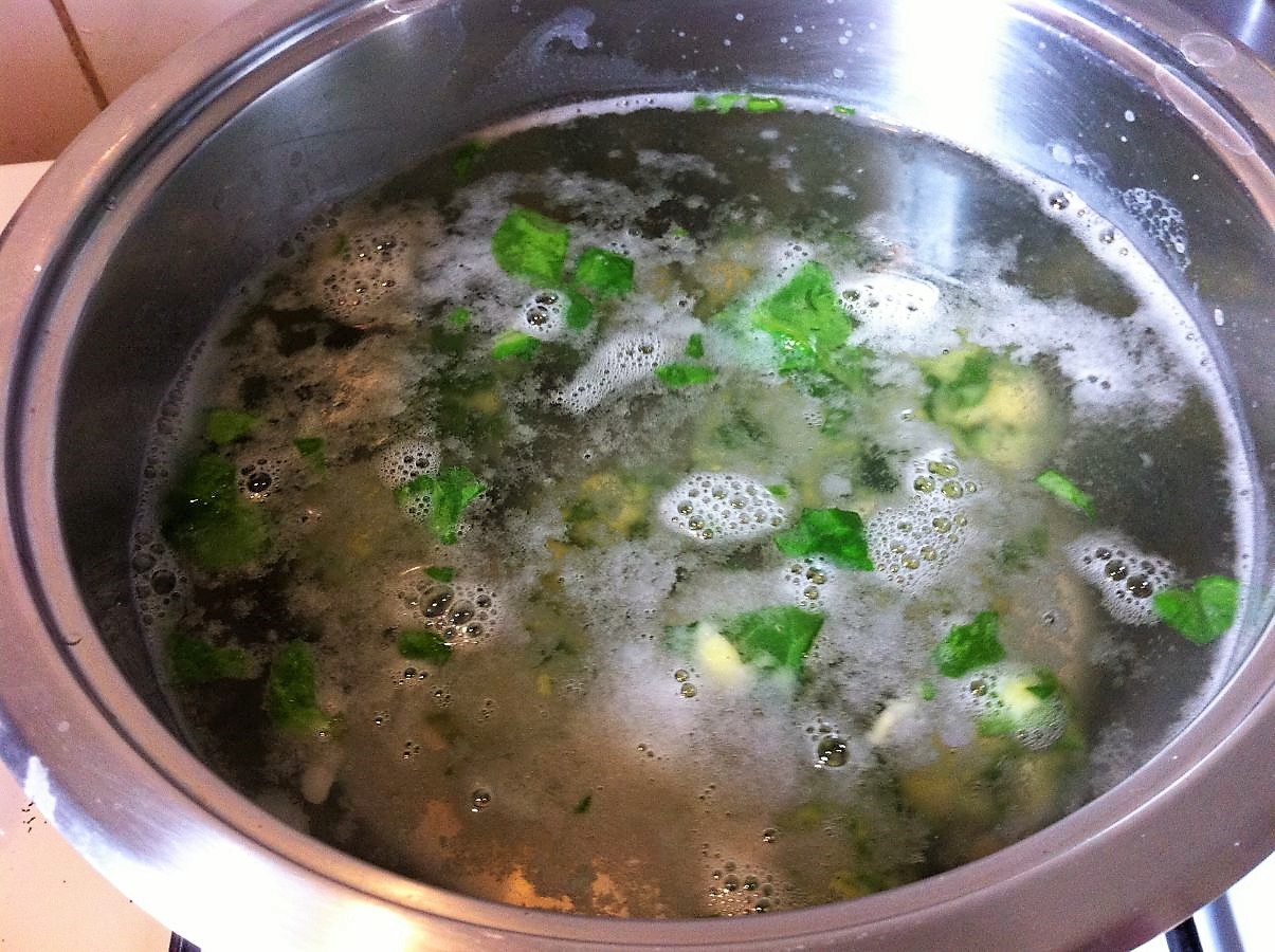 Die Spinatklöße brühen, bis sie von alleine an die Wasseroberfläche aufsteigen