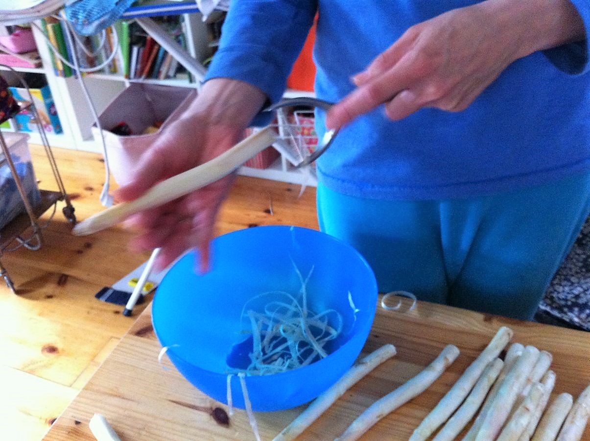 Ich weiß immer noch gar nicht, wie ich zu der Ehre gekommen bin, aber meine Frau hat mir am Samstag doch glatt ein Kilo Spargel geschält. Höchstwahrscheinlich damit wir bis zum European Song Contest mit allem durch waren.