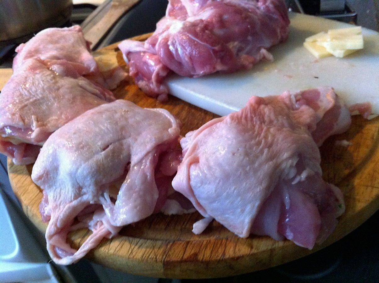 Nachdem Metro mich mit meinem Ansinnen nach ein paar Kilo Flanksteak aus dem Sonderangebot am Samstag hängen lassen hat, habe ich mir drei Kilo Oberkeulen vom Huhn beim Mix Markt gekauft. Das ist total leckeres Fleisch, das beim Braten richtig saftig bleibt. Ist auch total o.k, ich hätte zwar gerne mal wieder Rind, aber das haben sie mir jetzt für Mittwoch versprochen, mal schauen, ob mein Telefon klingelt.