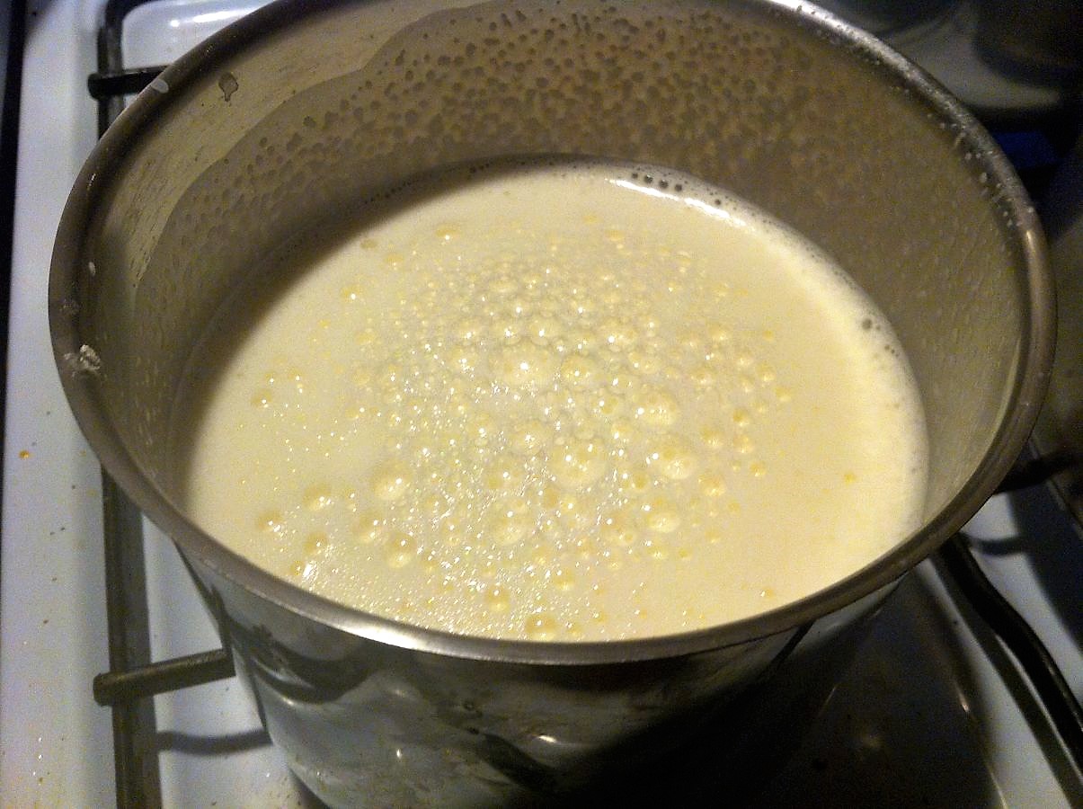 Wenn man permanent rührt, dann brennt nichts am Topfboden an und man kann quasi zuschauen, wie die Milch bei steigender Temperatur immer dicker wird.