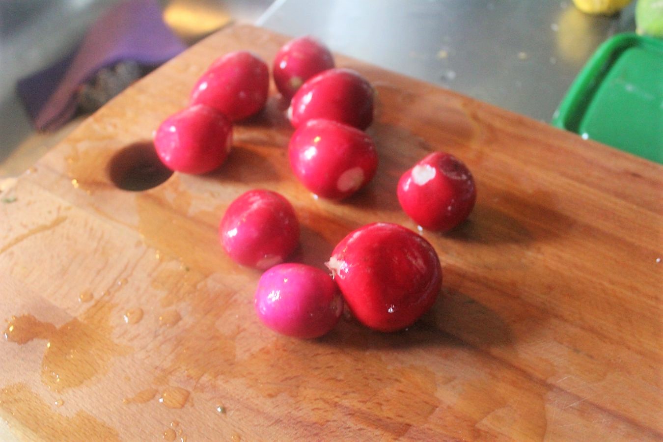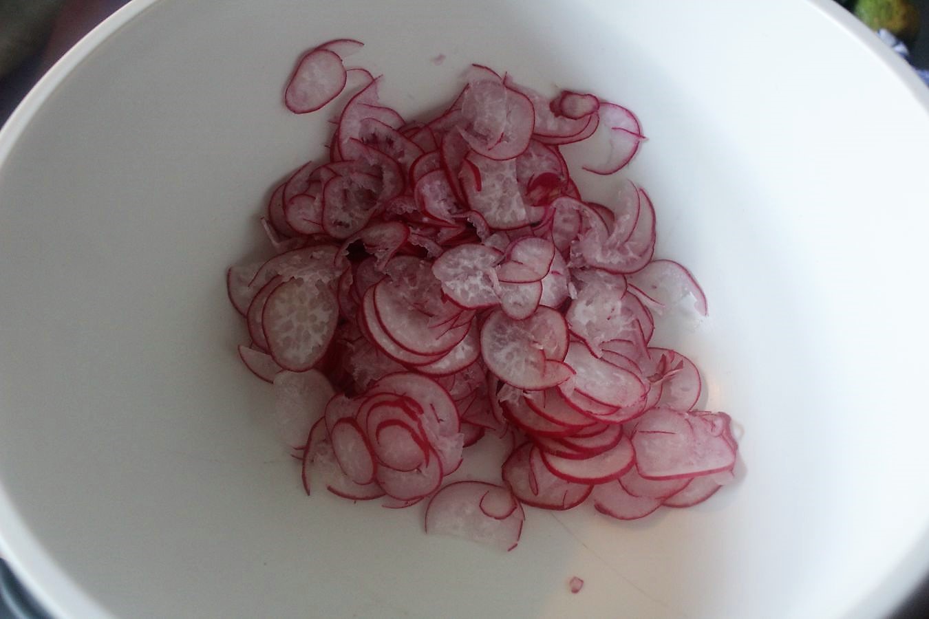 Die Radieschen kommen schon mal in die Salatschüssel.
