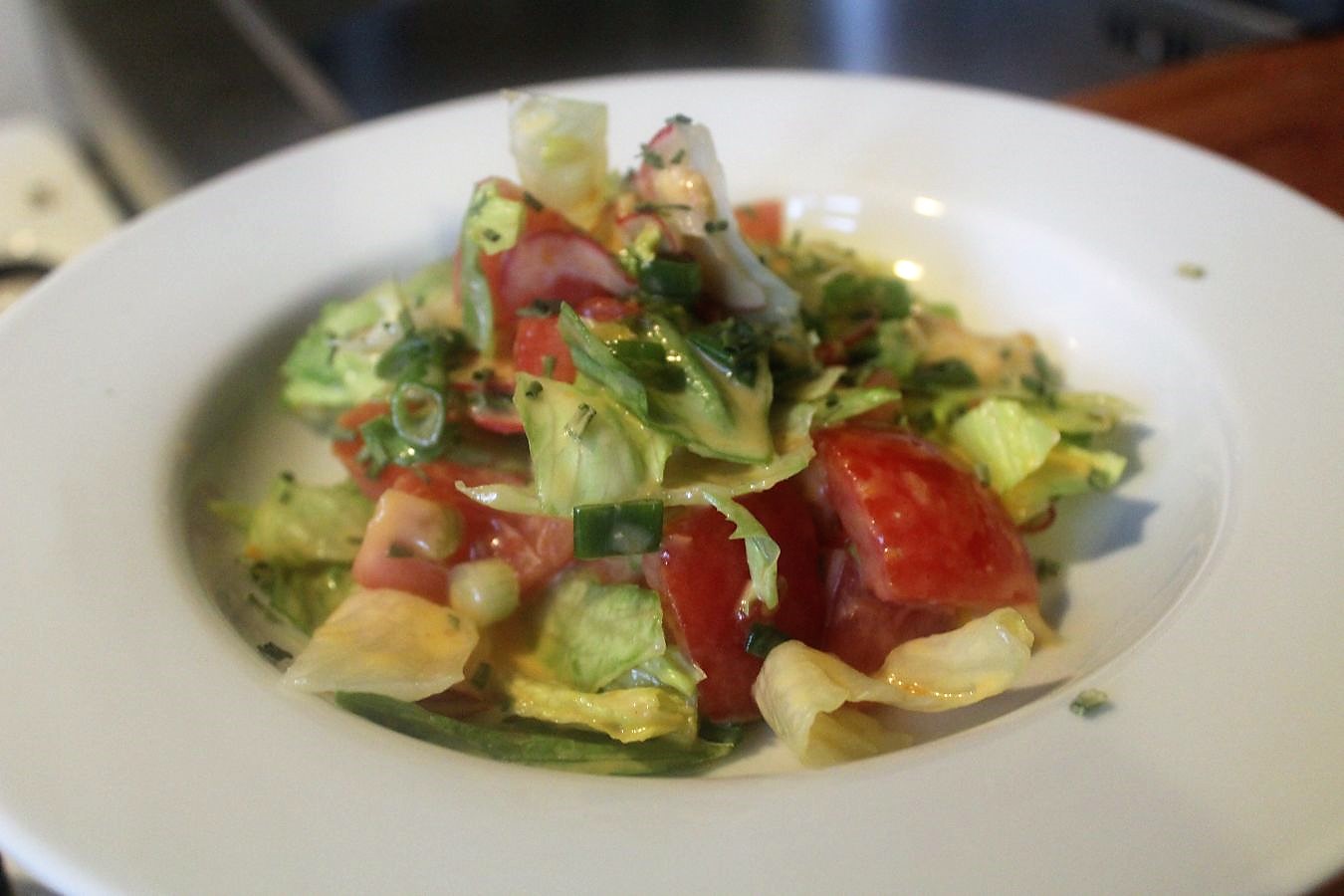 Das ist ein toller Beilagensalat, mit dem schönen fruchtigen Aprikosendressing, ordentlich knackig mit den Radieschen und dem Eisbergsalat und sehr harmonisch zu den anderen Zutaten.