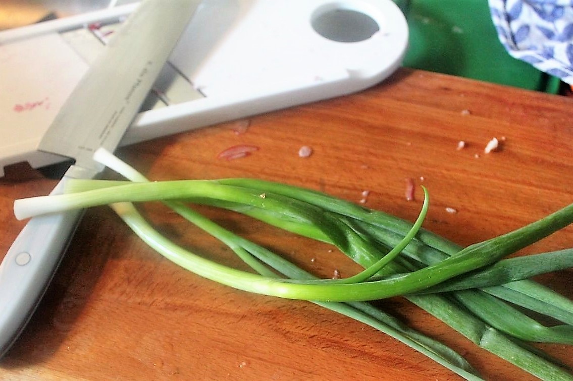 Die Lauchzwiebeln kommen natürlich auch in die Salatschüssel
