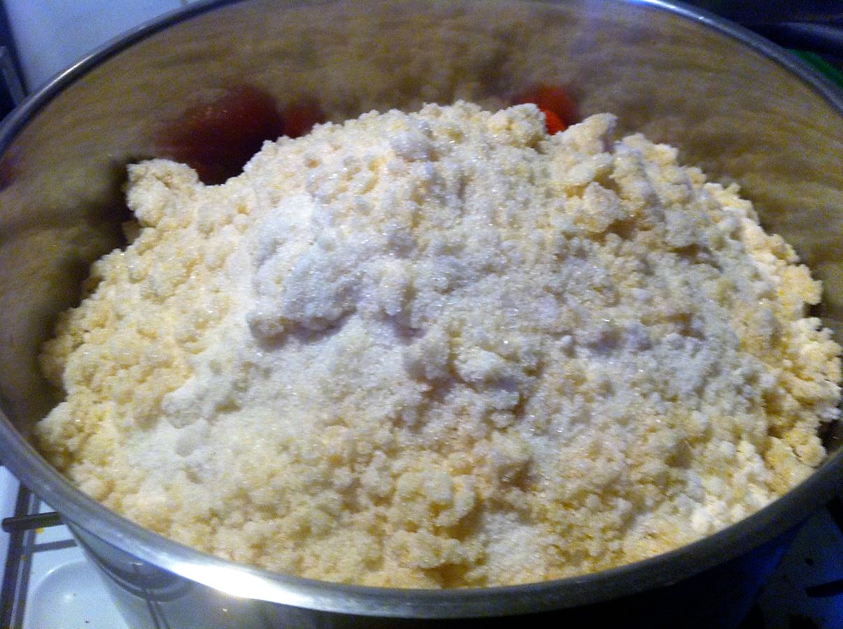 Als Gelierzucker verwende ich Gelierzucker zwei zu eins. Das heißt, dass man auf ein Kilo Frucht 500 Gramm Gelierzucker verwendet. Dadurch wird die Marmelade nicht so süß.