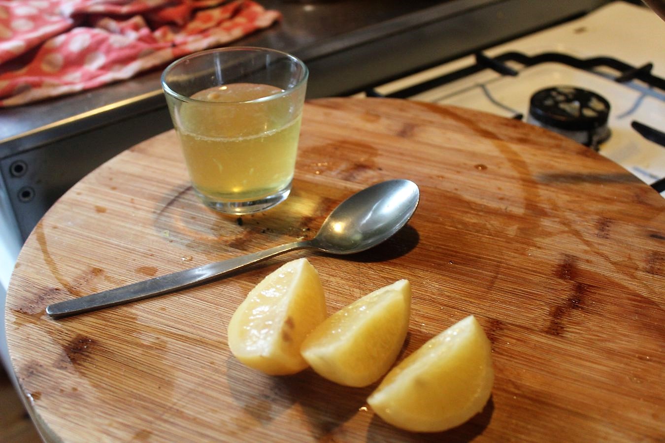 Ich fische mir schon mal drei Stücke Salzzitrone aus meinem Glas und nehme 100 Milliliter der Lake dazu. Da sitzt total viel Geschmack drin, der dem Stück Fleisch auf jeden Fall weiter hilft.