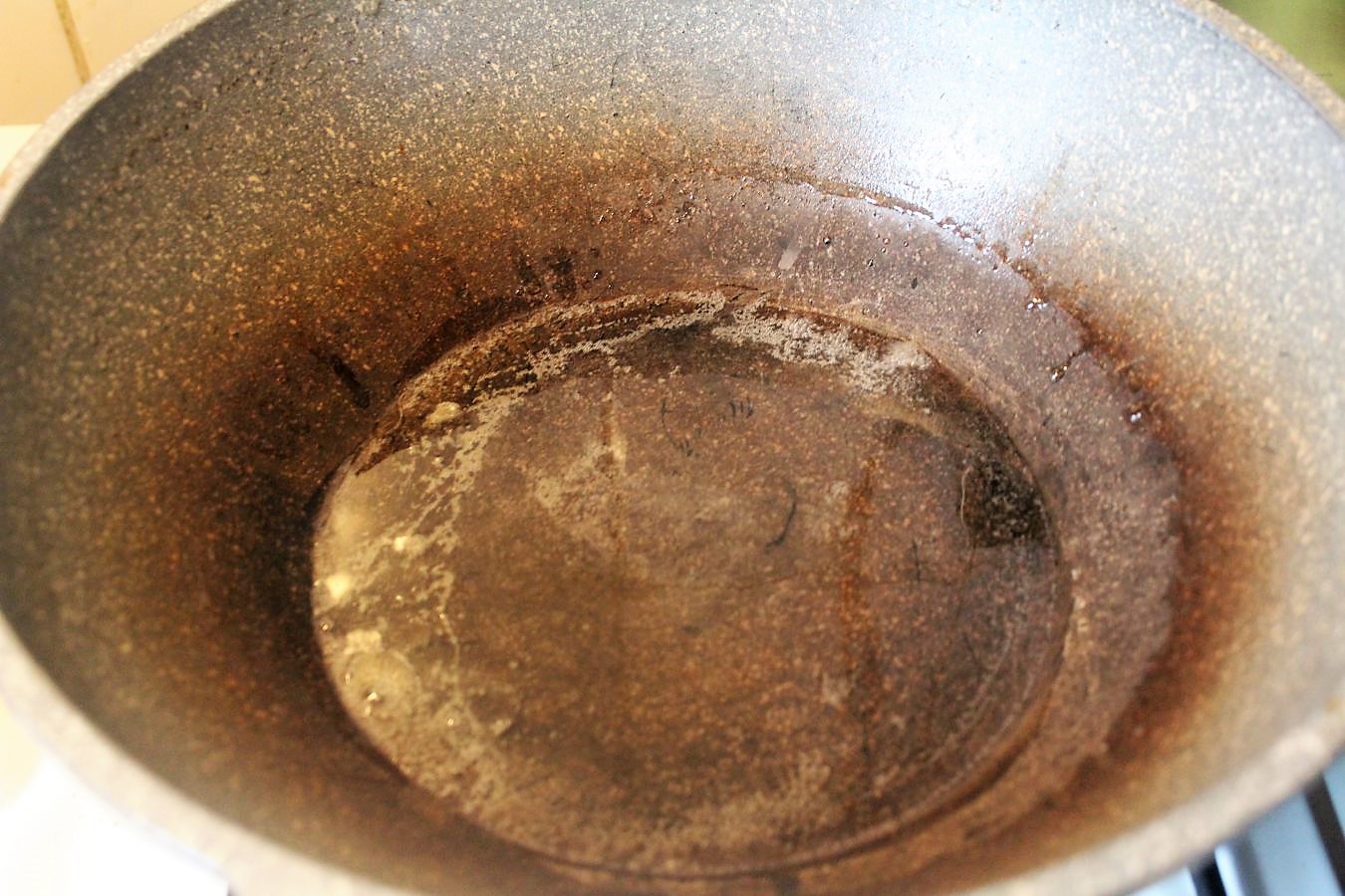 Nach dem Anbraten Salzitronen und die Flüssigkeit in den Wok geben, auf die kleinste Platte umziehen und auf kleinste Temperatur reduzieren.