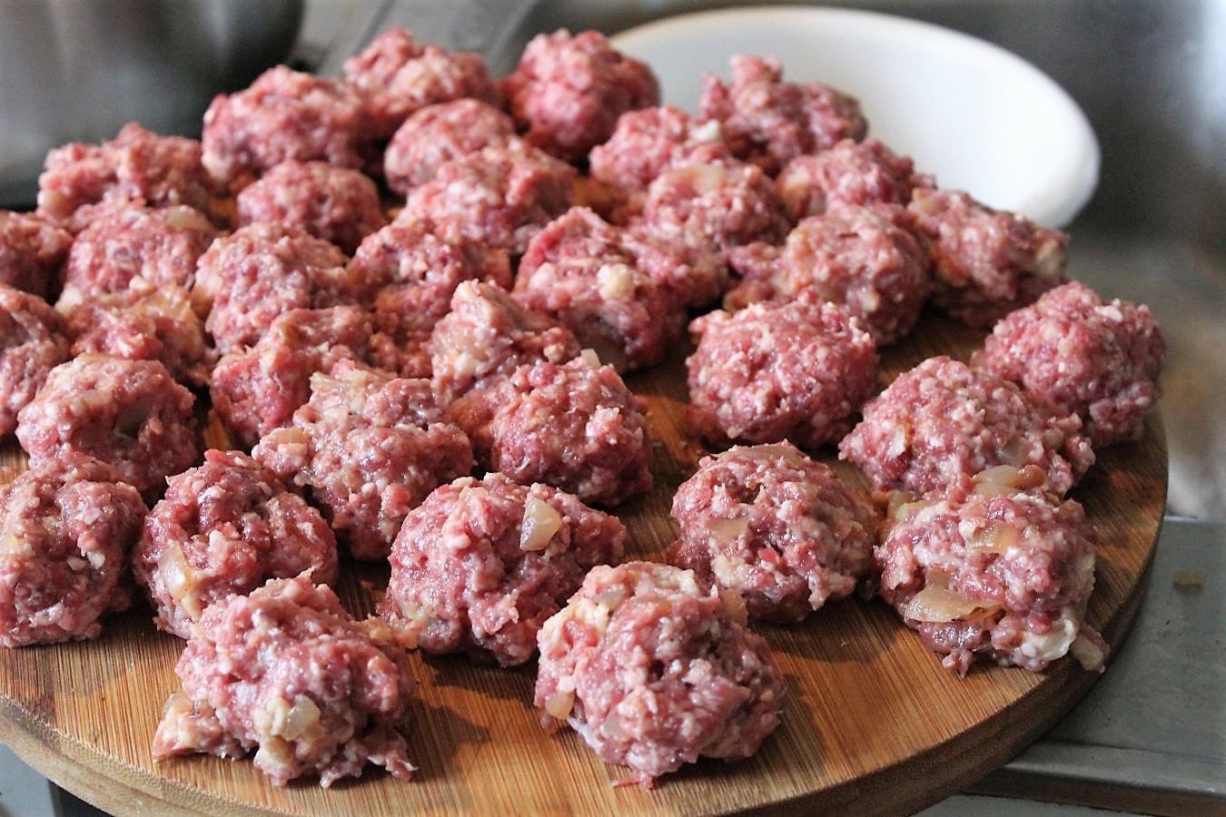Hackbälle formen. Wie groß Ihr die mögt, ist Geschmackssache.