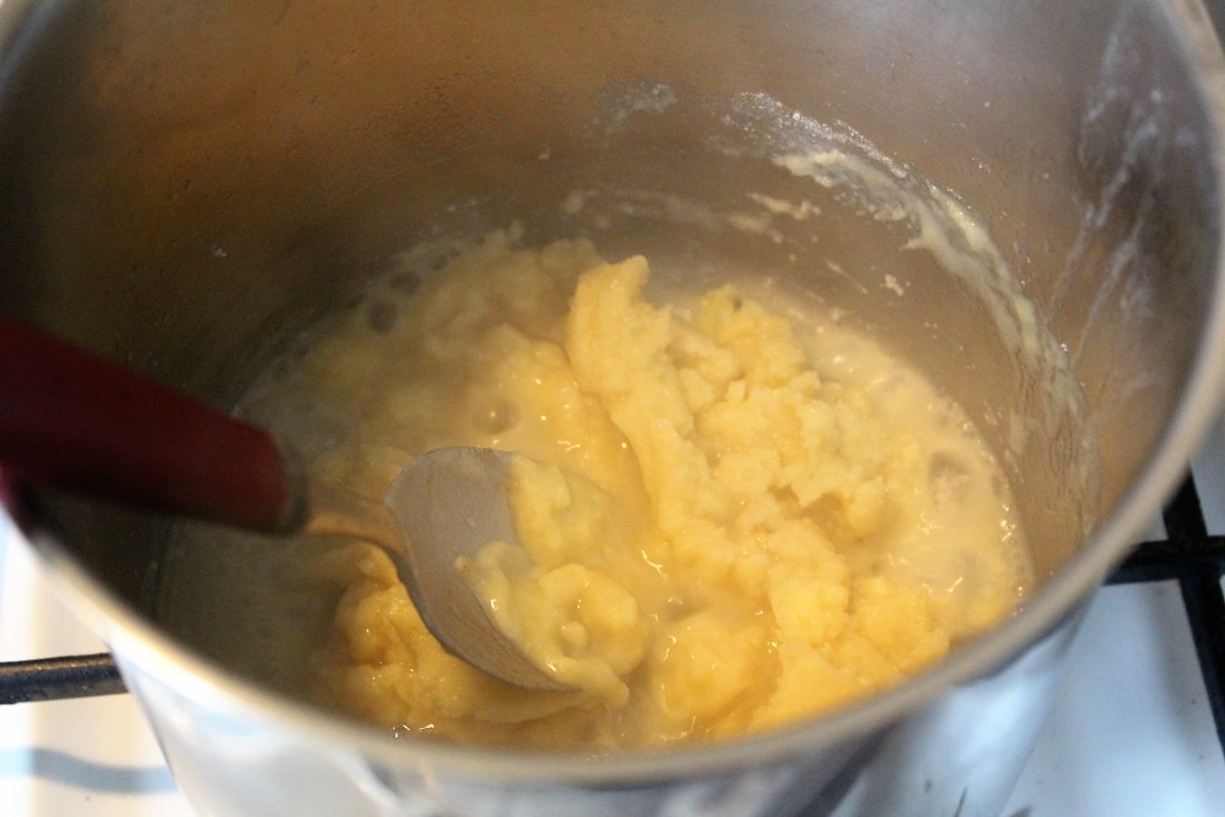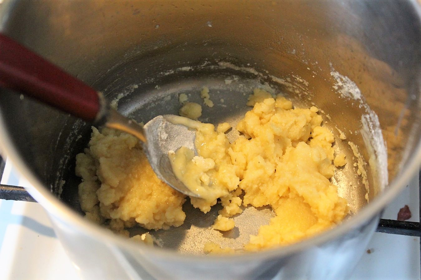 Die Soße wird auf Basis einer Mehlschwitze gemacht.