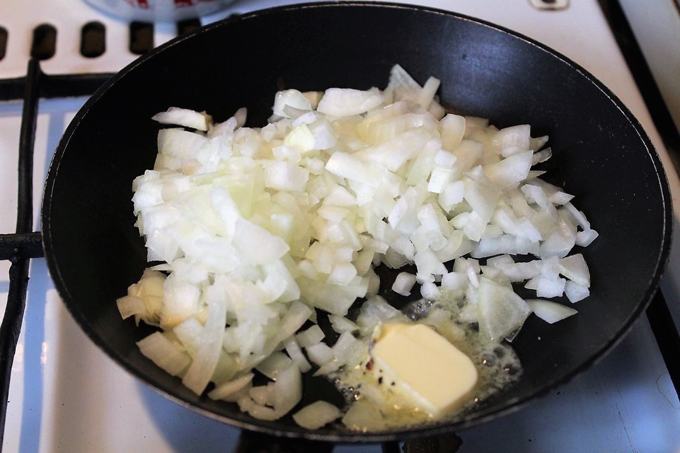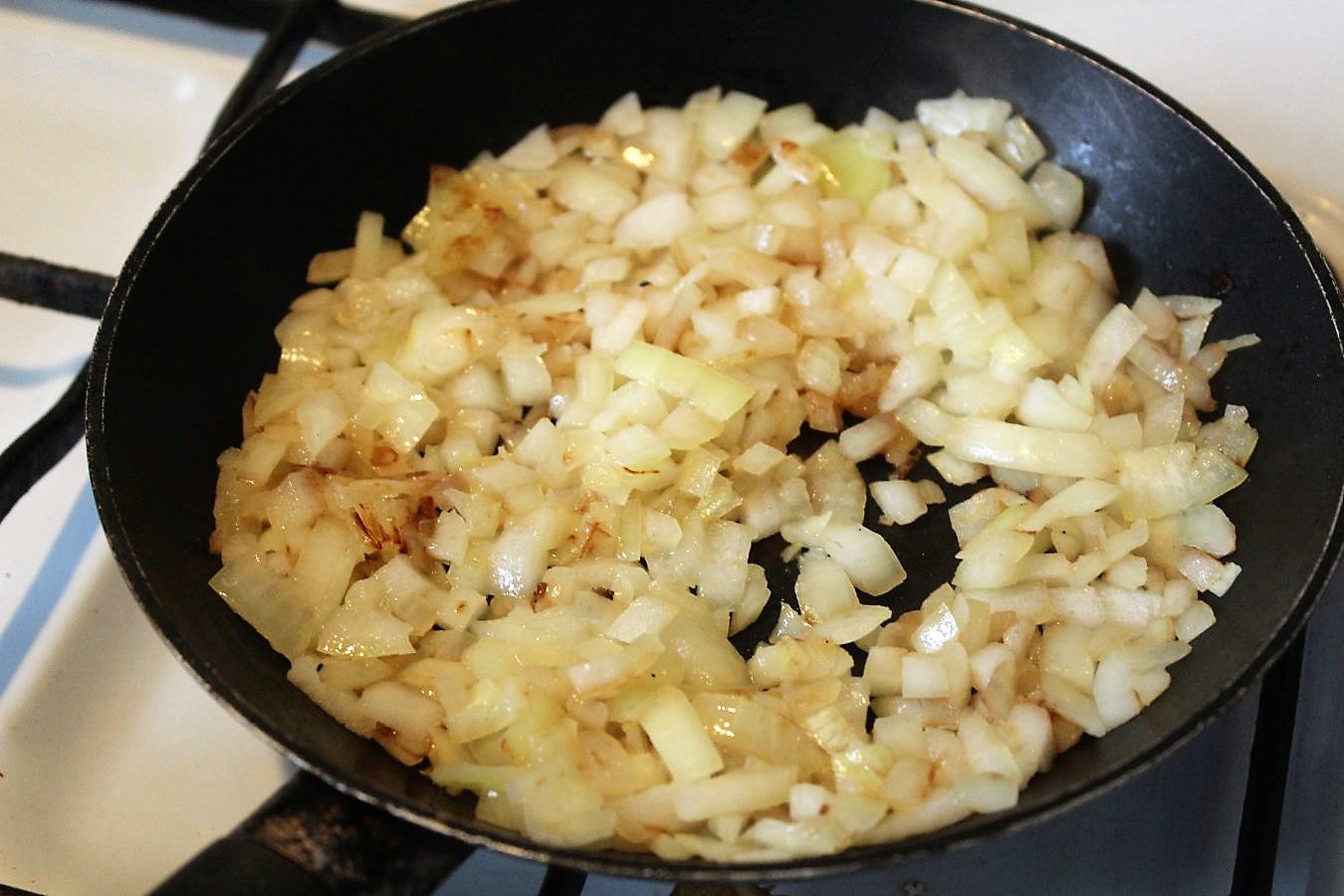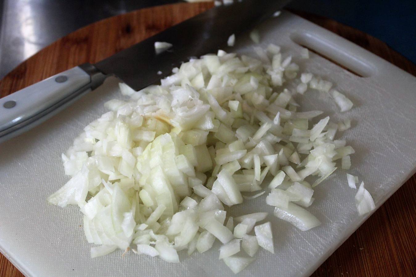 Die Zwiebel wird angebraten, bevor sie mit dem Hackfleisch verknetet wird, um sie bekömmlicher zu machen.