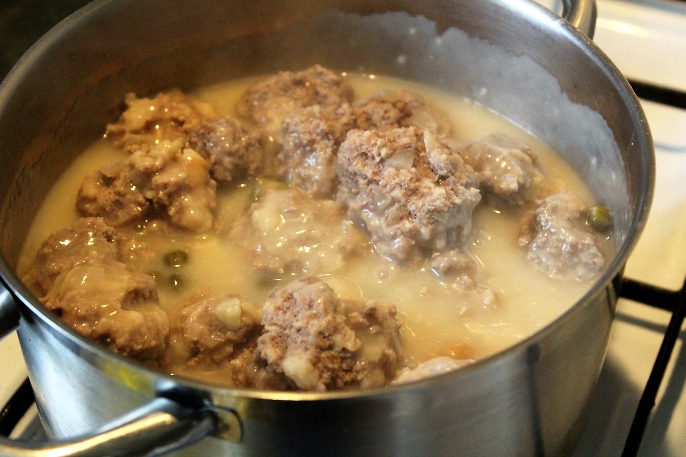 Hier sind die Königsberger Klopse im Wasser und ziehen in 10 Minuten gar.