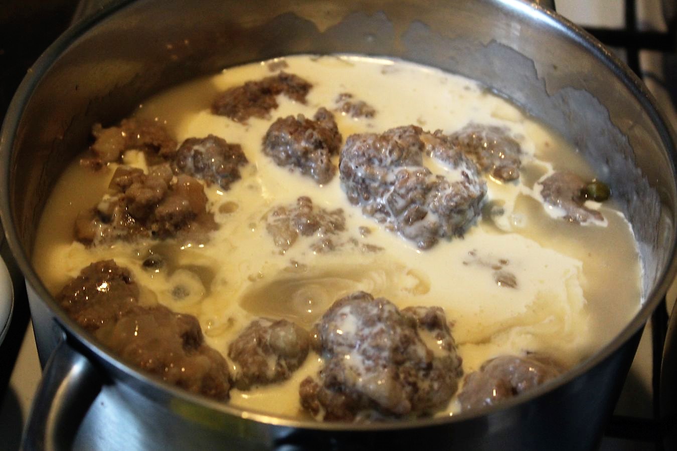 Hinten im Topf ziehen noch die Klopse, vorne wird schon die Soße gezaubert.