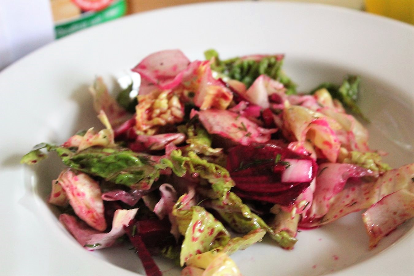 Salat mit roten Beten machen. Der verbindet in dieser Form die Verwendung von roten Beten, aber eben nicht die Konservenform, sondern als frische Komponente.