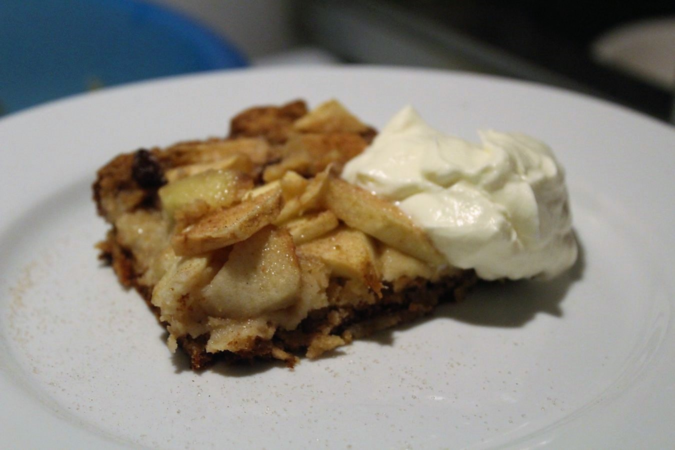 Die zerkleinerten Äpfel auf dem Teig verteilen.
