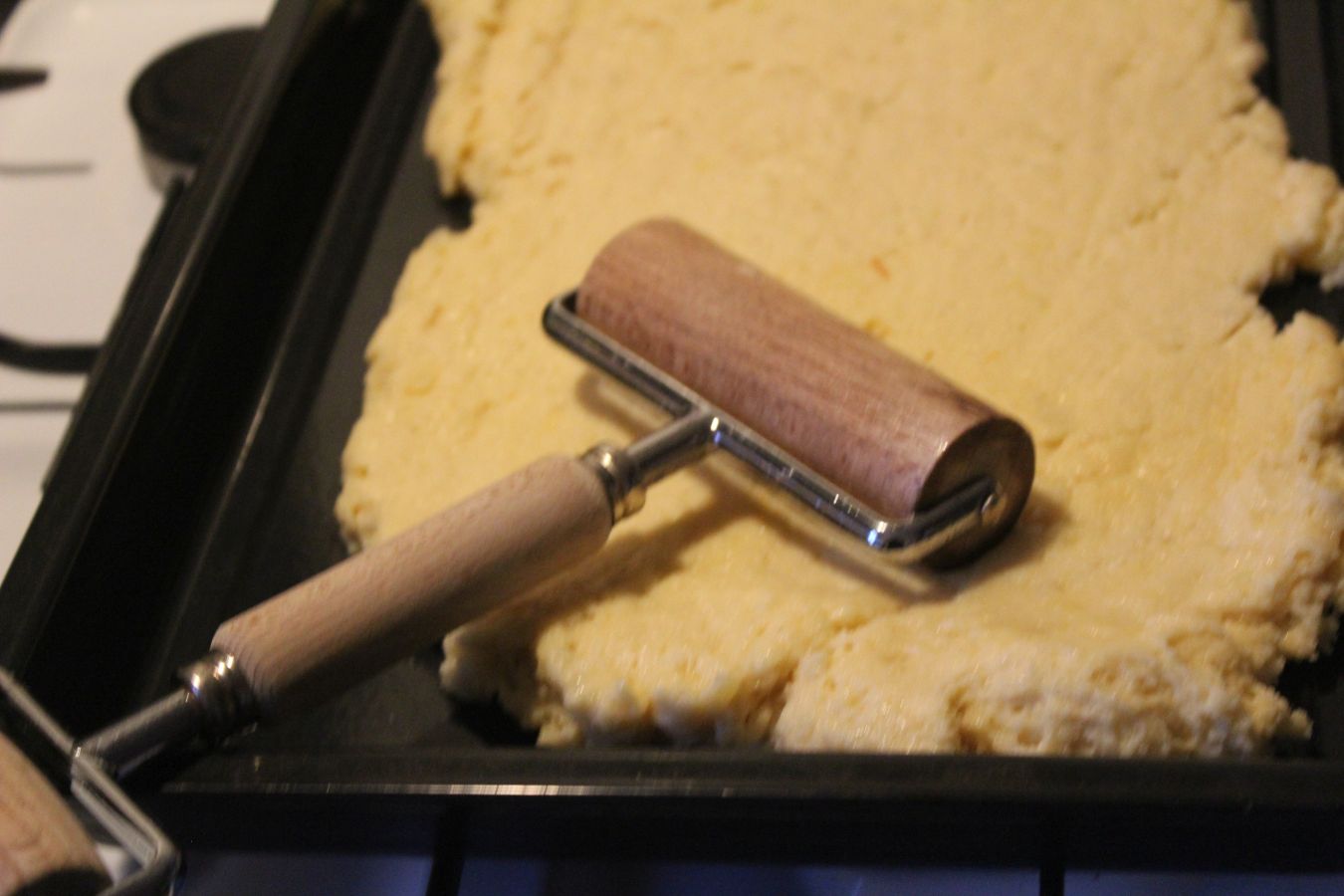 Teig mit der Rolle bis in die Ränder ausrollen.