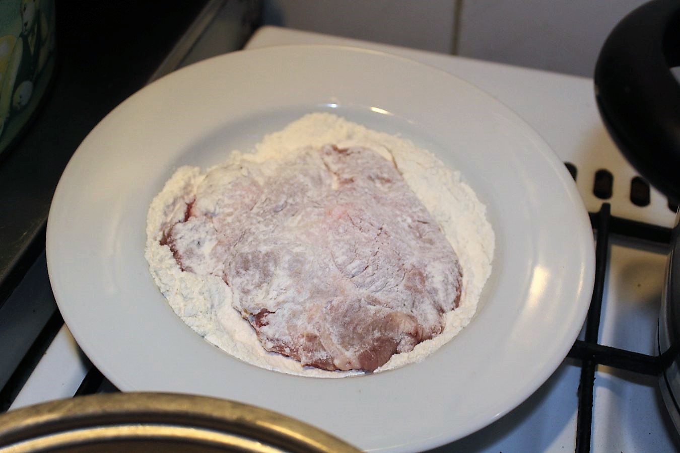 Fleisch von beiden Seiten ins Mehl drücken