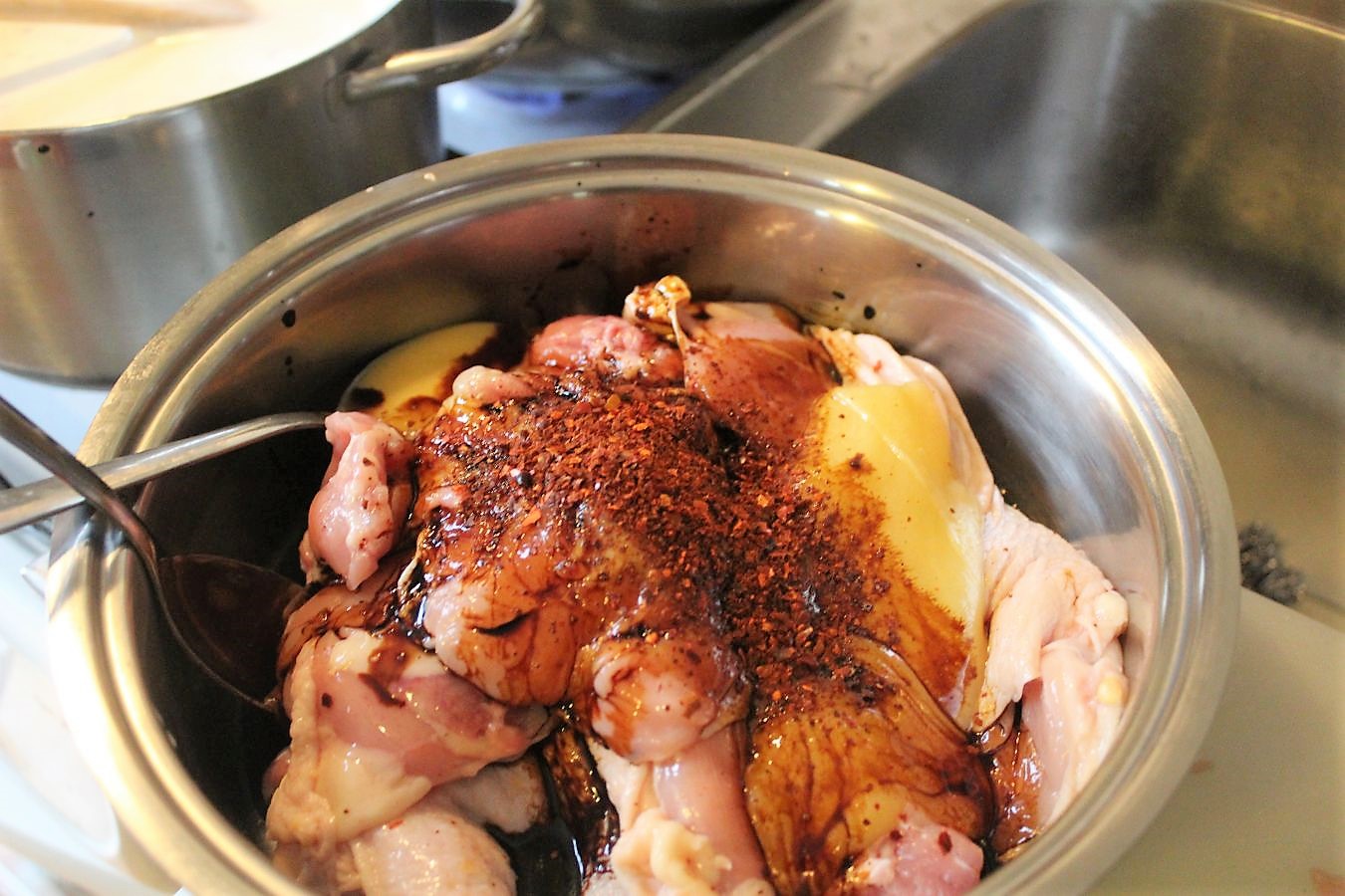 Das wird Donnerstag gleich nachgemacht, da ich morgen erst zum Markt fahre, um die Hähnchenkeulen zu holen. Ich werde das ganze dann über Nacht ziehen lassen.