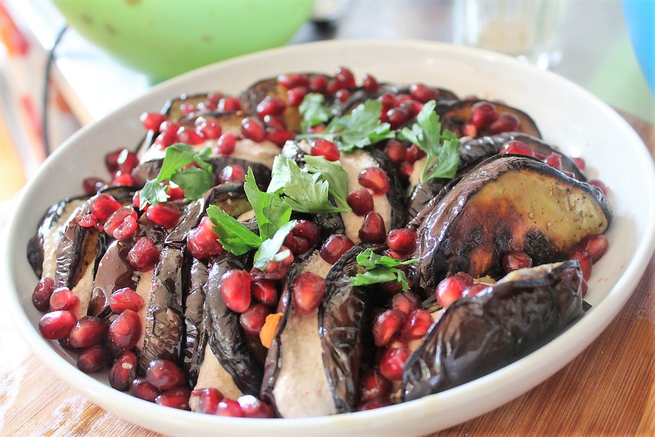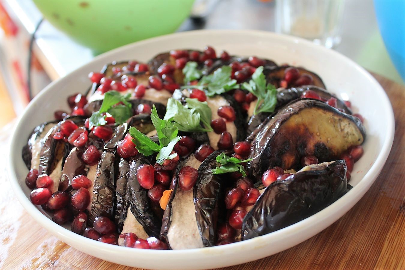 Auberginen mit Granatapfelkernen und Walnusscreme